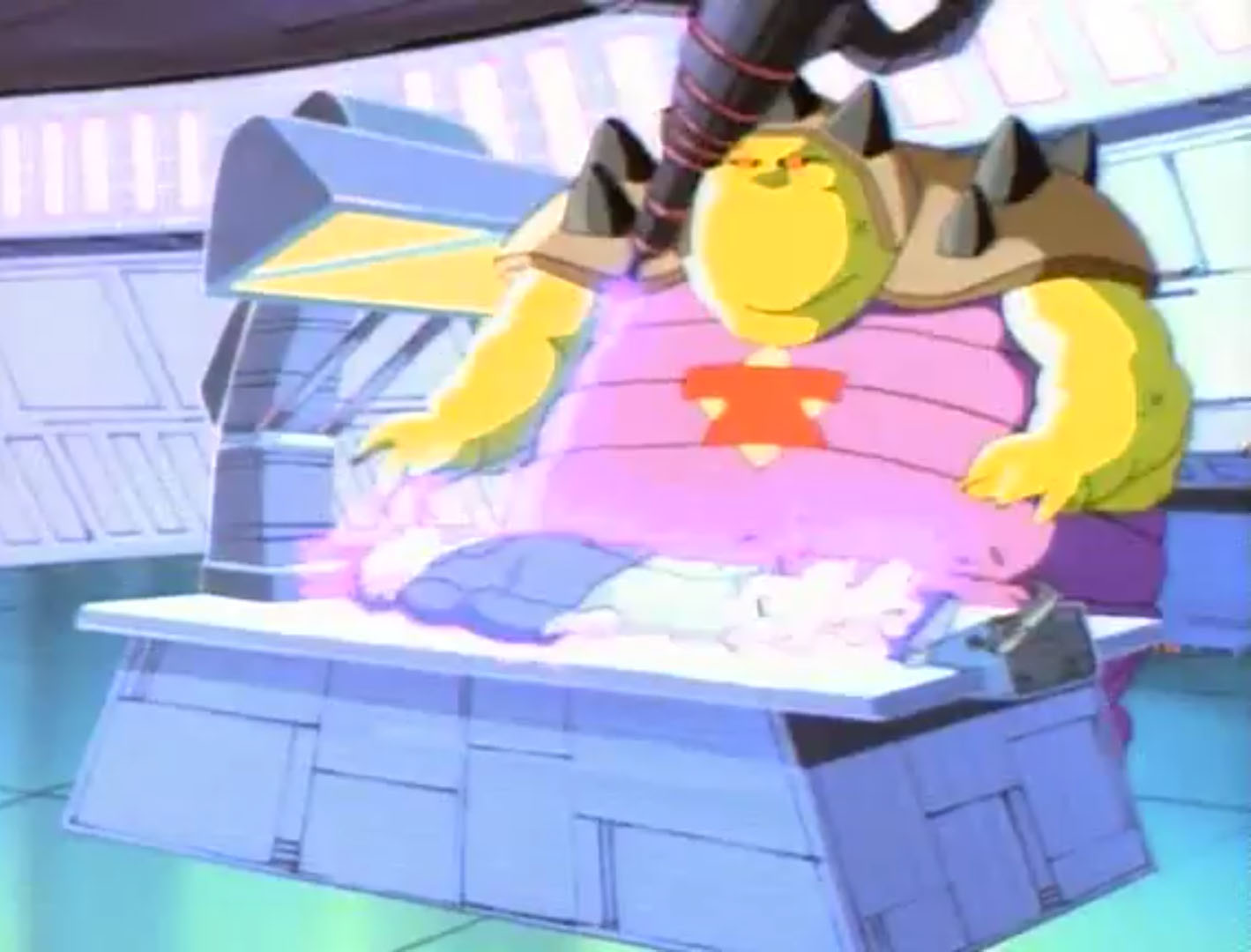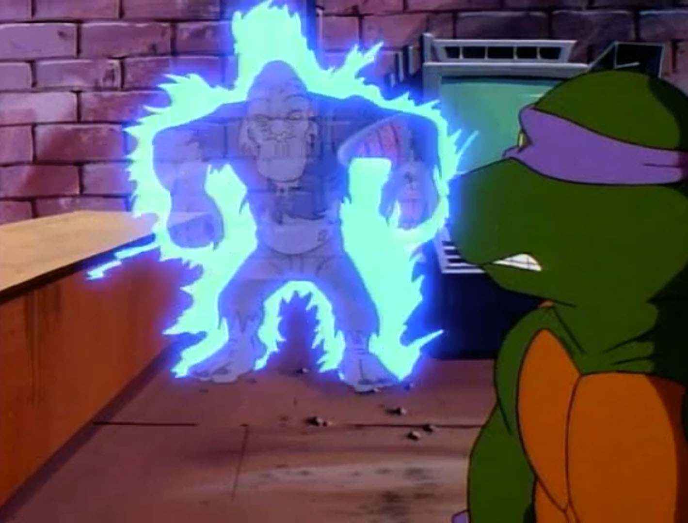 Un ancien malfrat avait été libéré par les mutants de Titanus et se trouvait déjà dans les locaux de l’E.N.F.E.R. Il était ravi d’avoir regagné sa liberté, d’autant que le colosse verdâtre lui offrait la possibilité de se venger de ceux qui l’avaient mis derrière les barreaux ; les tortues. Il n’avait qu’à s’allonger sur une table d’opération et attendre qu’un rayon termine de le transformer en mutant. Une créature monstrueuse faite d’énergie pure du nom de Synapse (100 000 voltsVF). Il avait pour mission de se débarrasser des tortues au plus vite. Le mutant regagnait la surface.