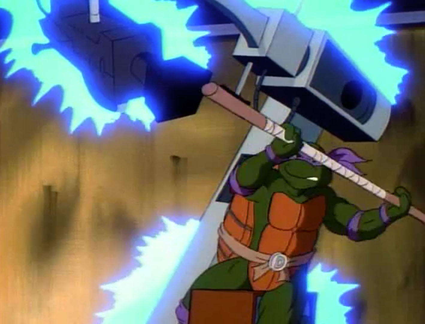 Donatello faisait des recherches sur son ordinateur, lorsque Synapse apparut à son écran. La tortue pensait avoir à faire à un virus. Il n’en était rien ! L’intrus prenait forme dans le laboratoire de la tortue et détruisait tous ses appareils les uns après les autres. Les trois autres tortues entraient pour voir ce qu’il se passait et se faisaient balayer. Synapse prenait la fuite à travers les égouts. Les quatre frères partaient à sa poursuite jusqu’à un chantier de construction. Le mutant prenait possession d’un boulet de chantier. Il pouvait contrôler tout ce qui était mécanique grâce à ses pouvoirs. La
