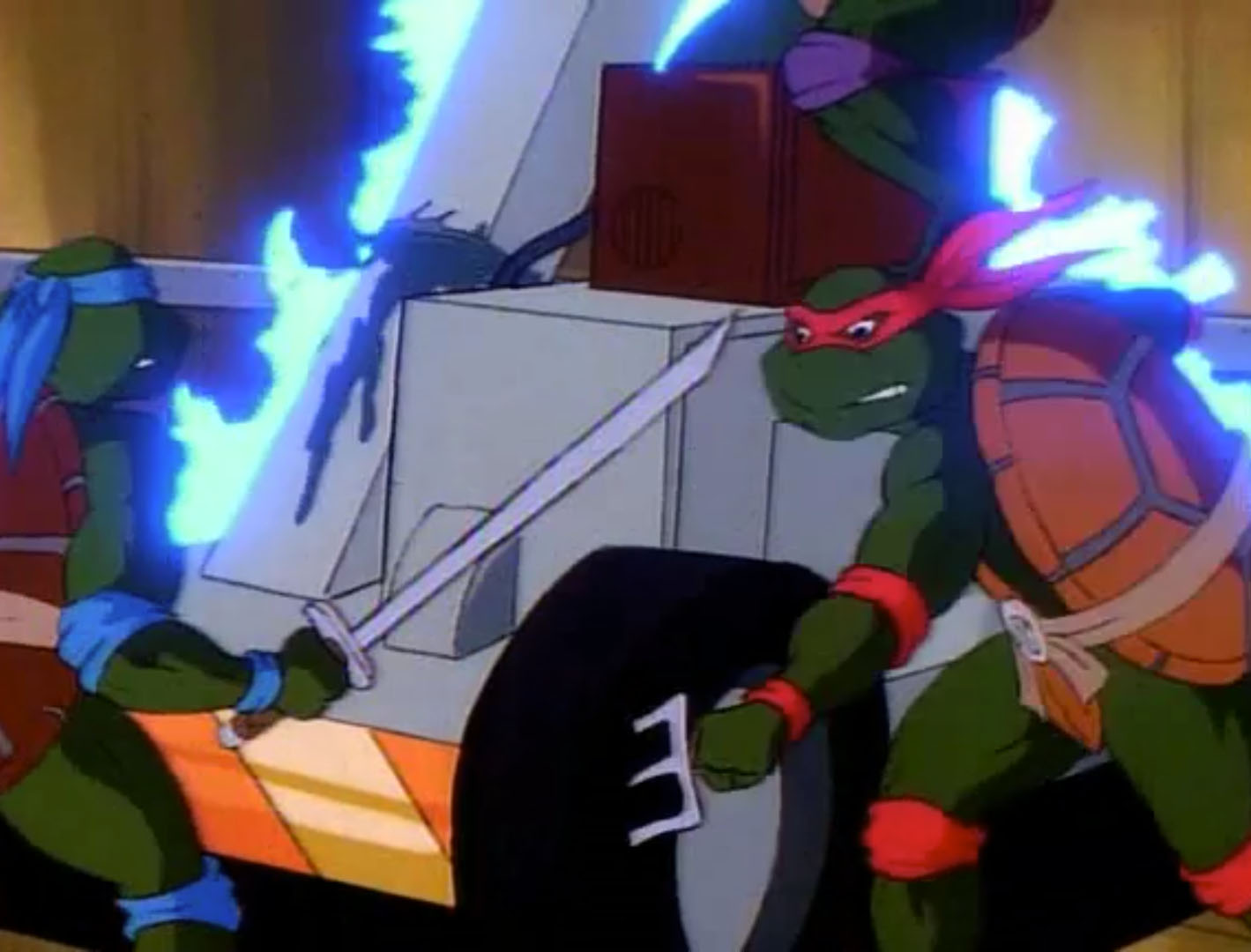 machine détruisait tout autour d’elle. Les tortues encerclaient la machine et commençaient à s’attaquer à son moteur et à ses chenilles. Bientôt, la grue tombait en miettes. Synapse disparaissait en un clin d’œil… Soudain, un camion manquait d’écraser les tortues. Leur ennemi était immédiatement de retour à bord du bolide.