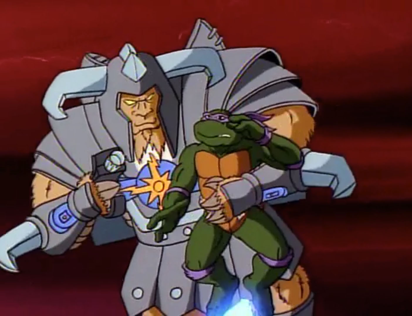 Une fois à l’intérieur, les tortues trouvaient le lieu vide. Même les appartements de Titanus. Le mutant les attendait et leur parlait à travers un message préenregistré. Le mutant se vantait d’avoir le transformateur de flux, ce qui lui permettrait de recouvrer sa gloire à venir. Tant enthousiaste, il avait même révélé où April était retenue. Krakus partait la sauver. Sans elle, son père viendrait à mourir dans le futur. Mais démuni, sans la moindre arme, l’homme espérait mettre la main sur un des rayons mutagènes de Titanus. Il demandait à Donatello de le transformer. La tortue craignait le pire pour leur nouvel associé. Surtout si à l’avenir, les mutants venaient à être perçus comme des menaces. Il s’allongeait sur la table d’opération, prêt à se faire frapper par le rayon. Celui-ci englobait son corps. Bientôt, un nouveau mutant naissait. Un colosse, bien plus grand que tous les autres déjà créés par E.N.F.E.R.