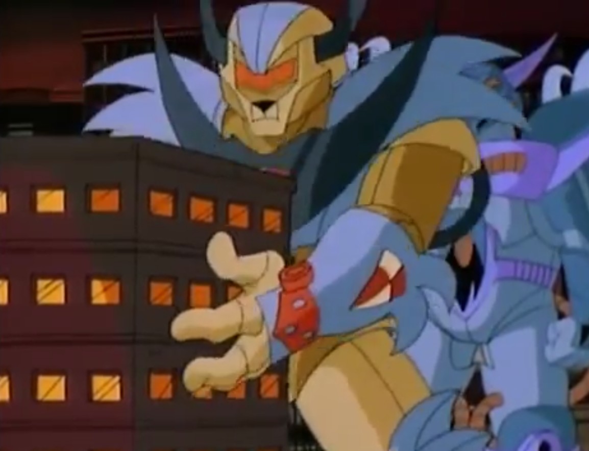 Arrivant au centre-ville, les tortues s’attaquaient aux quatre glaxxons, qui répliquaient à coup de missiles. Si les tortues en avaient dans leurs uniformes, elles ne savaient pas encore comment s’en servir. Impossible de rivaliser face à eux. Les cyber-tortues se retrouvaient enfouies sous l’effondrement d’un immeuble. Les envahisseurs poursuivaient leurs recherches à travers la ville.