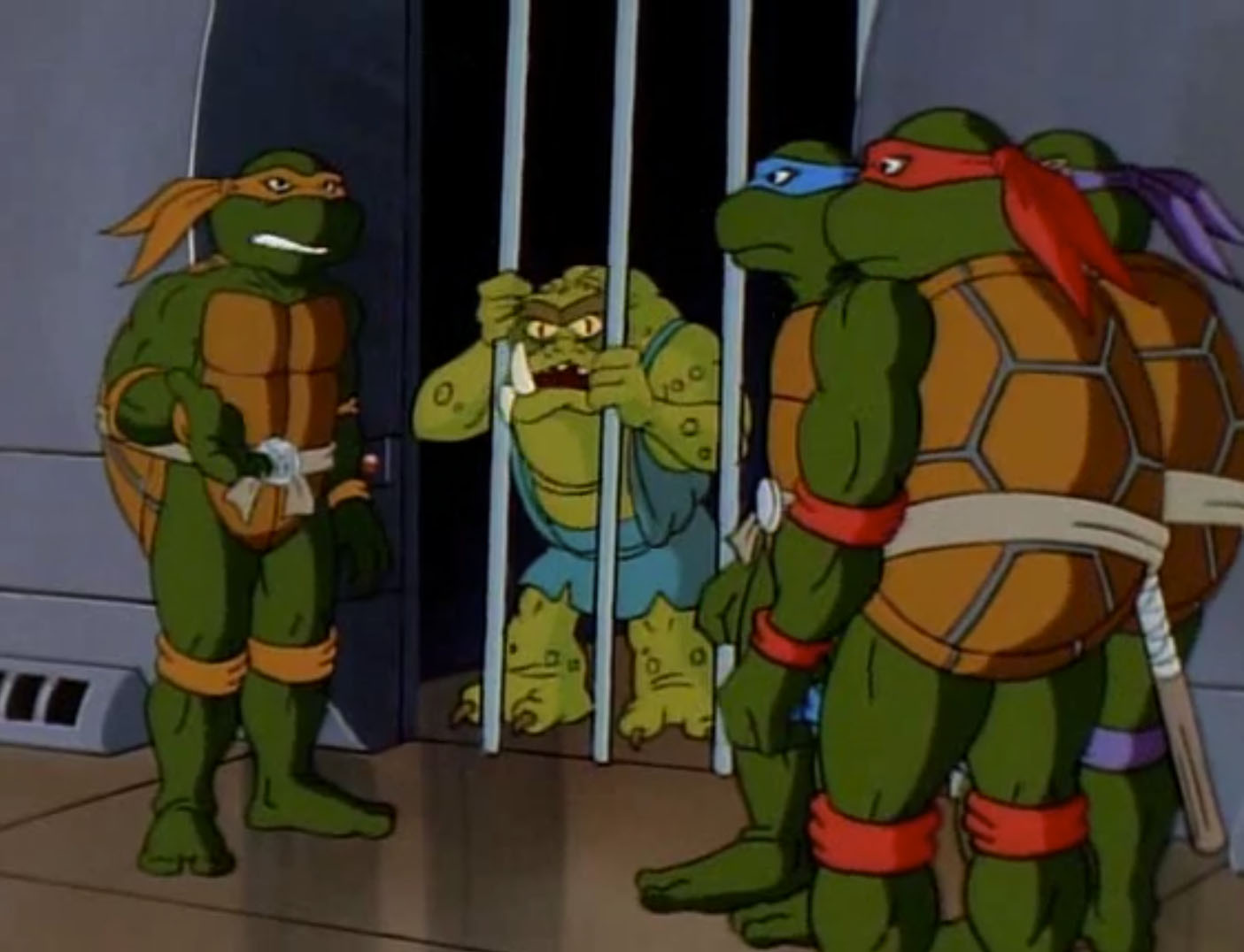 Les tortues arrivaient sur place, avançant sur leurs gardes au cas où un piège leur était tendu. Elles s’approchaient du portail, toujours allumé, jusqu’à entendre une voix leur demander de l’aide. Une créature était retenue prisonnière dans une prison, dans une pièce non loin. Il s’agissait de Gargon, un habitant de la Dimension X qui avait été enlevé par Krang pour tester un nouveau mutagène. Il leur proposait de les aider à retrouver leurs ennemis en remerciement pour sa liberté.