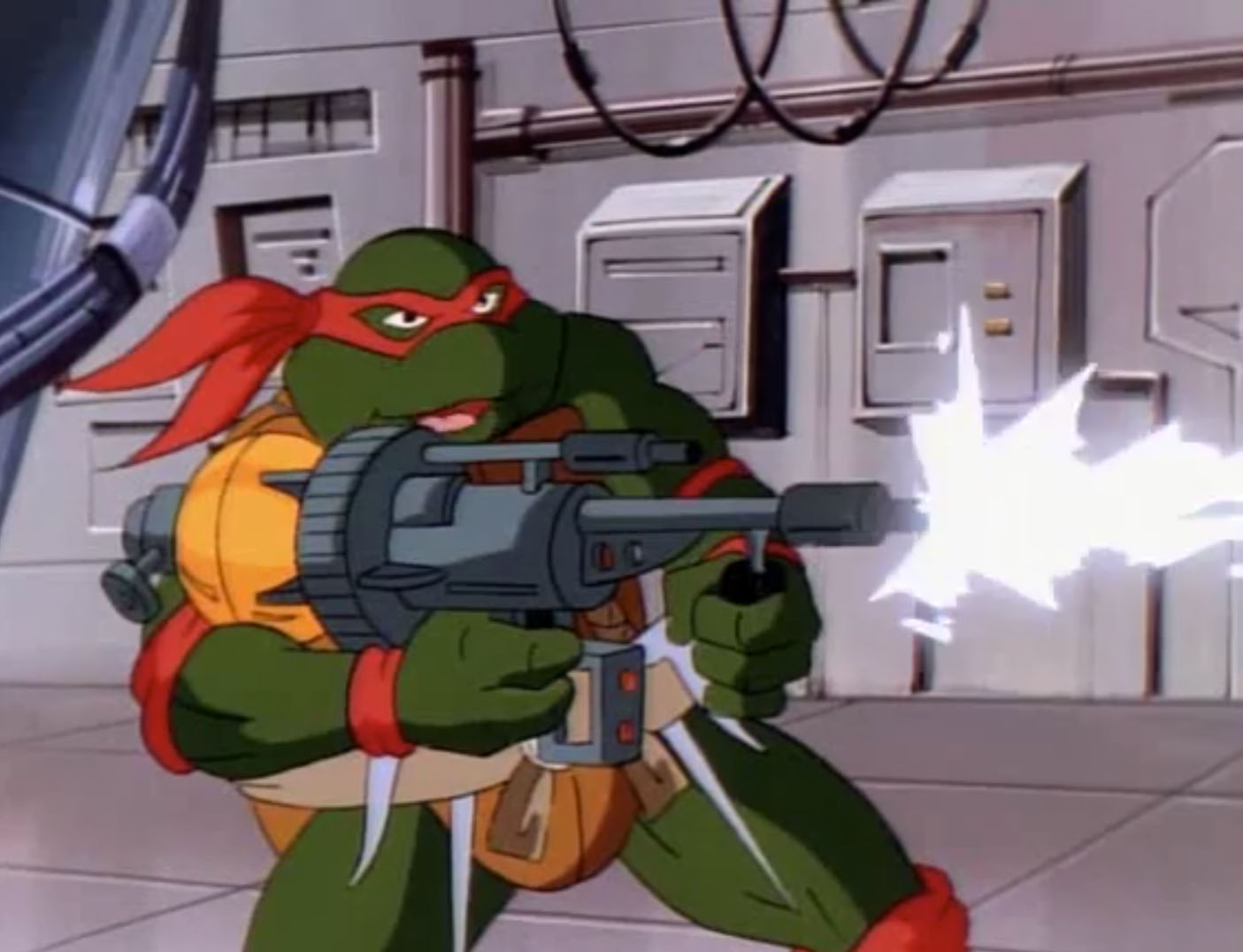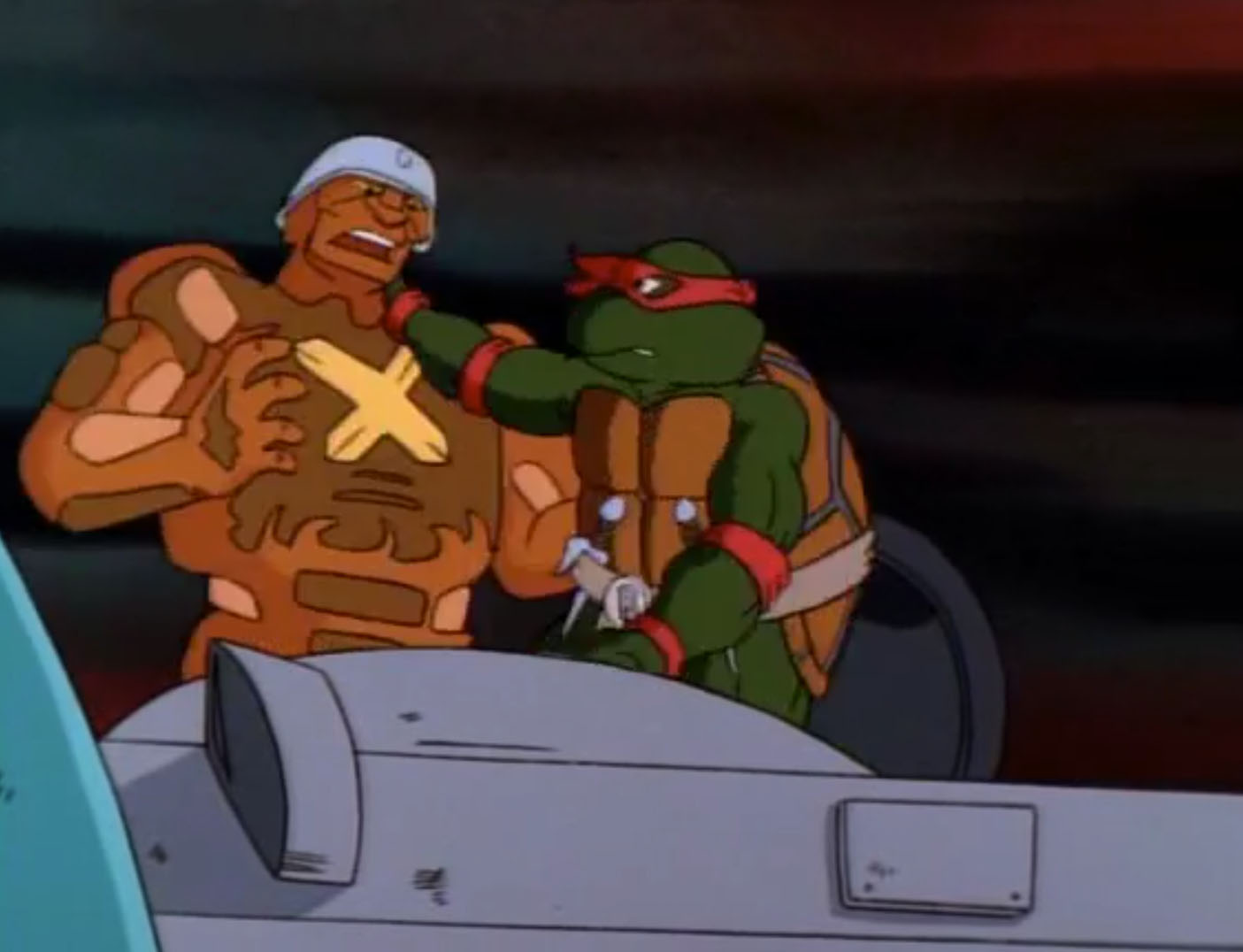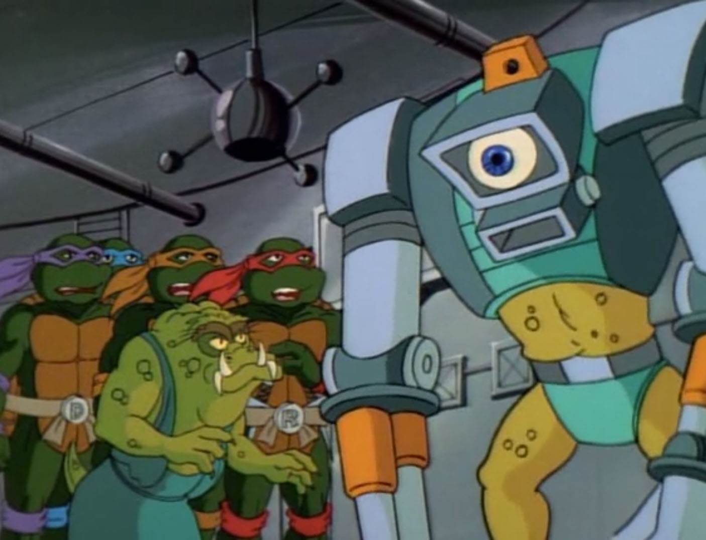 Le peuple qui se trouvait là, les Wrecking crews, était collectionneur d’objets exotiques. Il leur présentait ces créature, mi-organiques et mi-robotiques, qui s’avéraient bien moins pacifistes qu’ils ne l’auraient cru. Très vite, elles cherchaient à s’emparer de leurs armes. Raphael perdait ses saïs dans le combat, tandis que ses frères se faisaient mettre au tapis. Ils partaient se cacher dans un entrepôt, attirant par la même occasion leurs ennemis. Ils étaient reçus à grands coups de lasers, détruisant leurs parties mécaniques. En quelques instants, les agresseurs étaient vaincus et mis en pièces. Sans perdre de temps, les mutants prenaient un des vaisseaux stationnés, en direction de la planète Balaraphon.