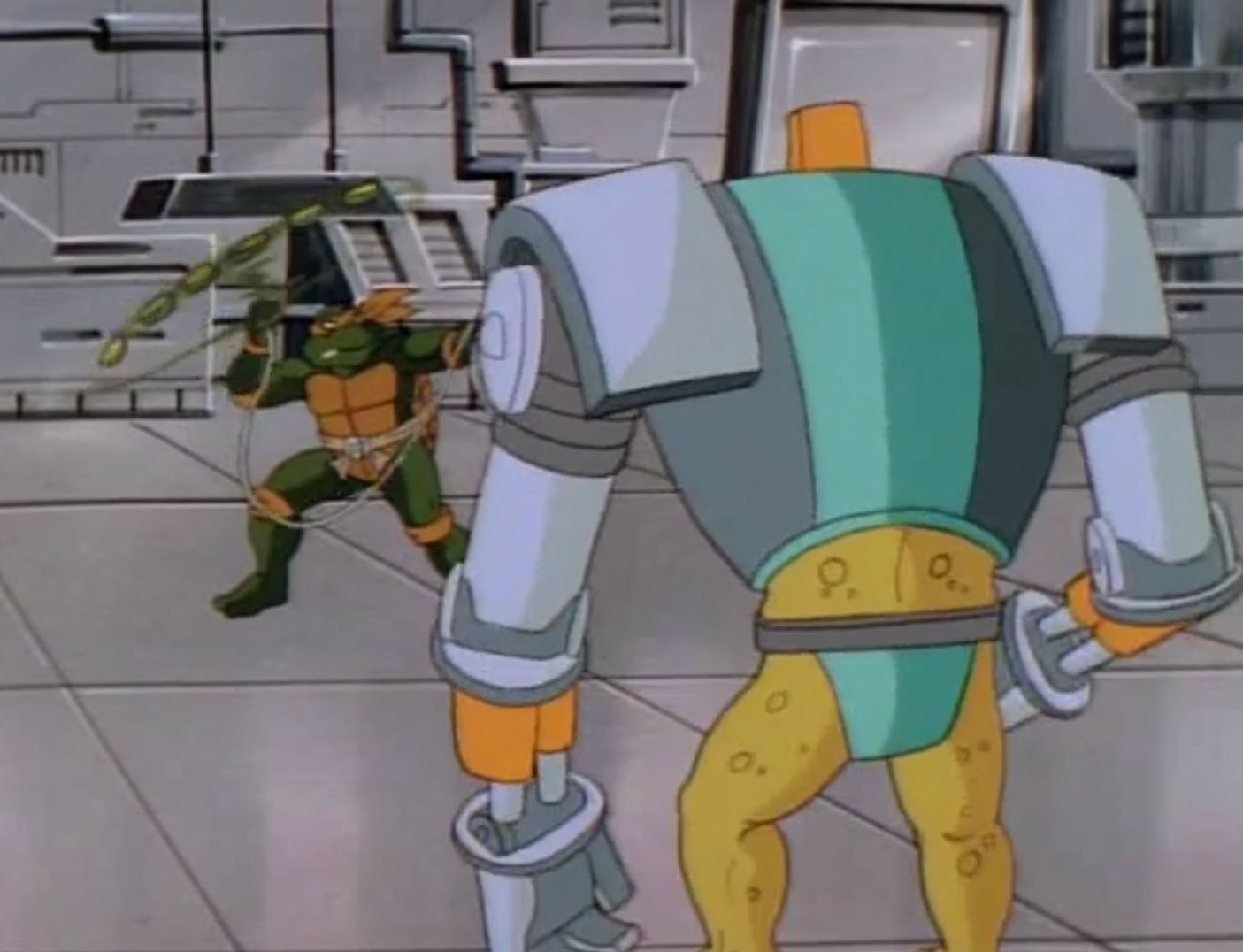 Raphael et Donatello parcouraient les corridors du Technodrome à bord du vaisseau à la recherche d’ennemis et du moteur qui faisait encore tourner la forteresse de Krang. Une fois trouvé, ils le détruisaient. Les tortues pouvaient repartir chez elles à travers le portail. Gargon était remercié pour son acte de bravoure. Krang ne contrôlait plus rien dans son Technodrome. D’autres tentacules s’approchaient de sa sphère de combat.