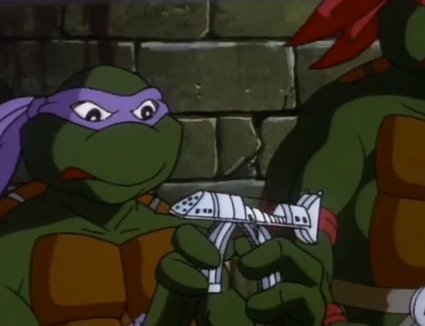 De retour au repaire, Raphael était plus énervé que jamais. Il voulait sa revanche sur Dregg et gagner par tous les moyens. Il demandait même à Carter et à Donatello de leur concevoir des pistolets lasers redoutables pour se débarrasser de l’envahisseur. Leonardo lui rappelait qu’ils étaient avant tout des ninjas. Les deux génies du bricolage avaient bien un petit quelque chose, un laser à fixer sur le poignet, mais il n’était pas prêt. Et Raphael, d’une humeur massacrante, doutait fortement des capacités de ce tout petit gadget. Splinter entrait à son tour pour rappeler à ses élèves que la force du ninjutsu était la vertu, pas la force et les armes. S’ils voulaient vaincre Dregg, ils auraient surtout besoin de leurs qualités et du courage. Ils devaient faire éclater ses plans au monde entier.