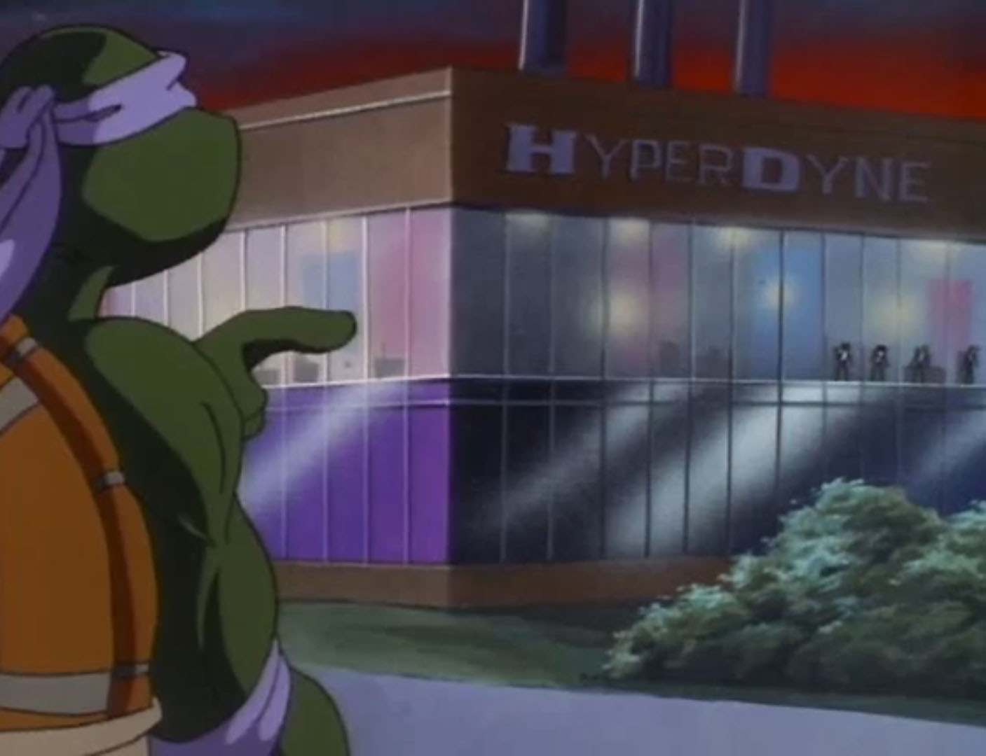 À l’intérieur du bâtiment, Hi-Tech supervisait l’intervention de son équipe. L’arrivée des tortues était célébrée par une salve de tirs lasers qui les forçait à se replier derrière une console. Leonardo et Donatello bondissaient pour désarmer les insectes de l’espace tandis que Carter s’occupait de leur chef. Mais il se retrouvait en mauvaise posture et se transformait. Les tortues craignaient le pire. Arriverait-il à se maîtriser ? Rien de moins sûr, d’autant que les sirènes des voitures de police se faisaient entendre dans les rues.