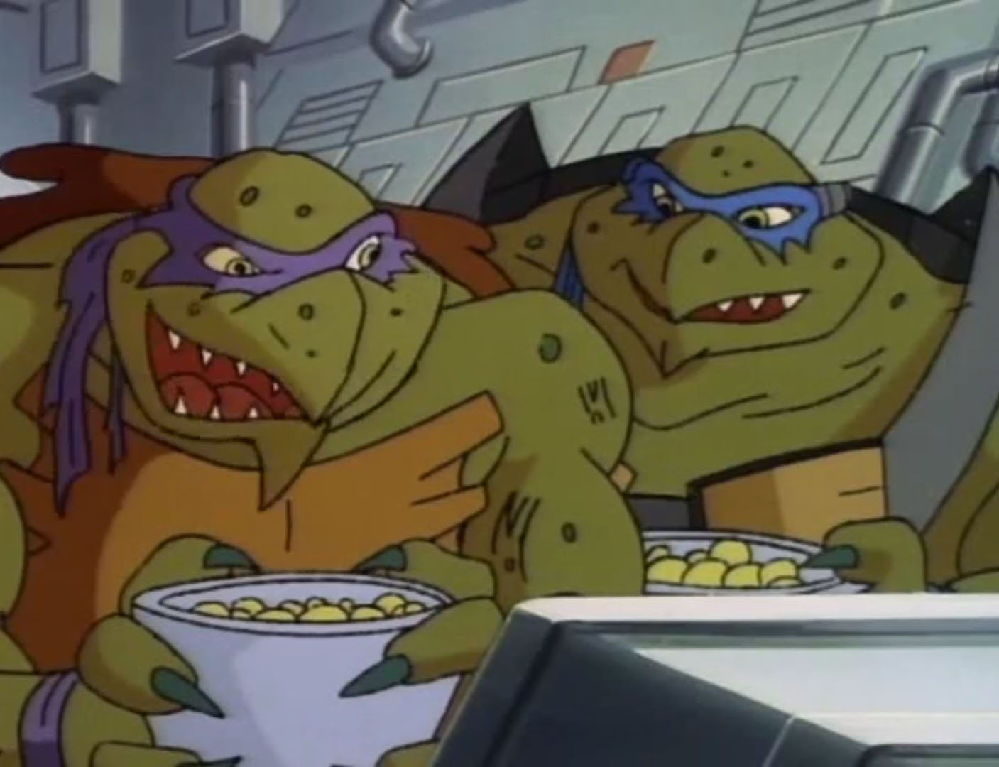 Michaelangelo et Raphael continuaient d’être attaqués par le Replicon. Eux aussi se transformaient de nouveau et livraient bataille au robot, qui se transformait bientôt en conserve salement amochée. Manque de chance, la machine portait bien son nom. Elle se réparait d’elle-même et se dupliquait à chaque attaque. Les coups ne l’affectaient pas, bien au contraire. Les tortues faisaient bientôt face à quatre d’entre elles. Puis huit…
