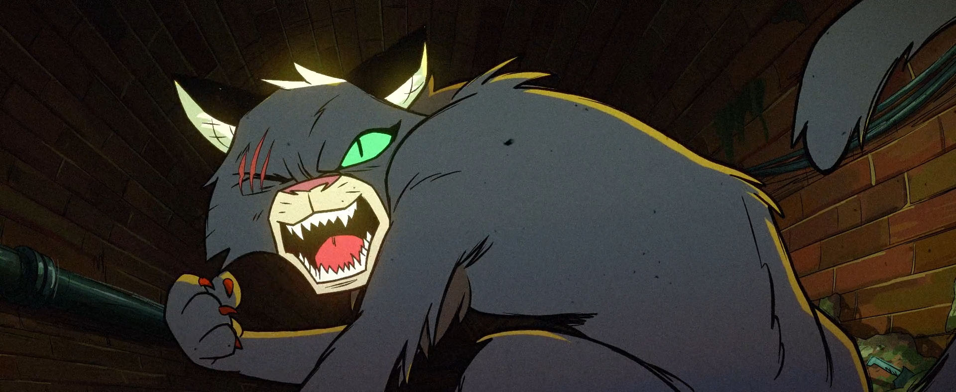 passé de Scratch et sa mutation ressemblent beaucoup à celle d’Old Hob dans le TMNT (Vol. 5) #3. Le chat s’en était pris à Splinter et a essuyé un coup de griffe qui lui a fait perdre son œil droit. Il s’est transformé en mutant justement parce que Splinter avait été en contact avec du mutagène et qu’il en avait reçu sur son poil.