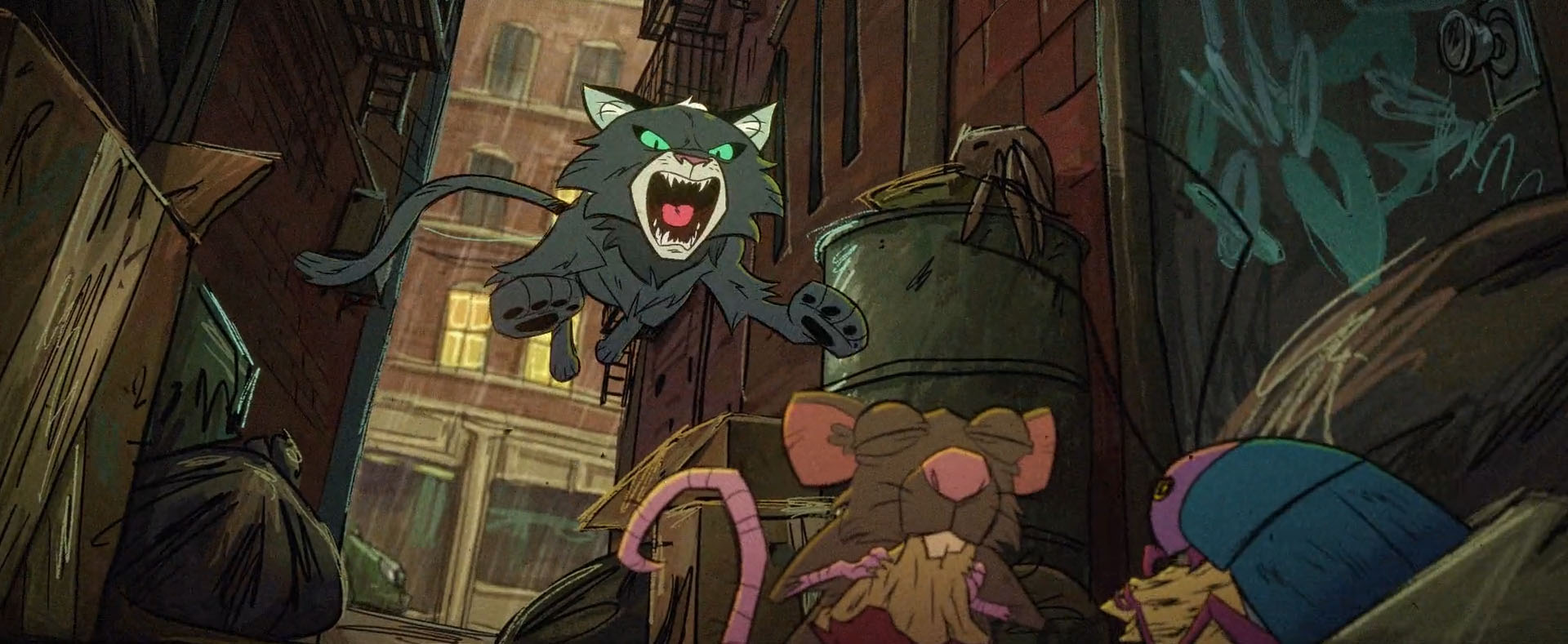 Le chat n’en avait pas terminé avec Splinter et essaya de le tuer à plusieurs reprises, directement dans son repaire, lorsqu’il était assoupi. À chaque fois, les tortues, aussi petites fussent-elles, se mettaient en travers de son chemin et le mettaient en déroute (Scratch se fait les griffes, S2 E9).