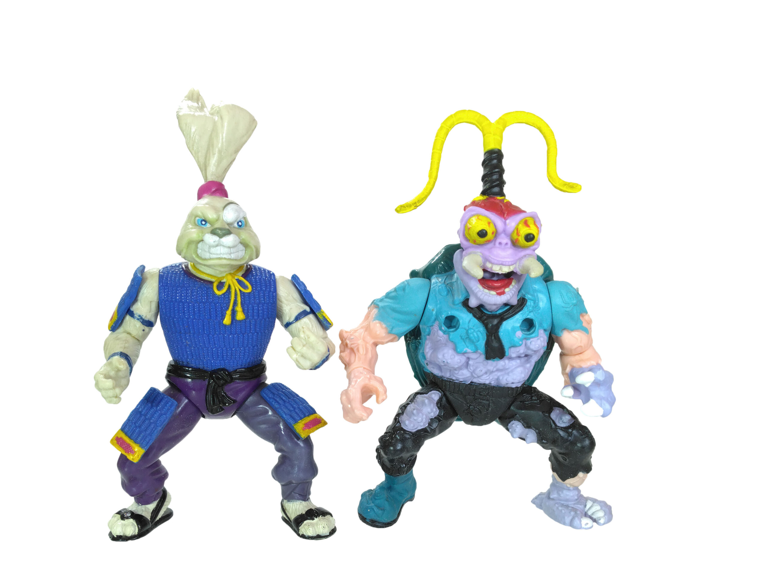 Scumbug est la seule des quatre premières figurines de 1990 à avoir été conçue par Varner Studios. C’est l’artiste Eddy Mosqueda, qui avait déjà travaillé sur Usagi Yojimbo l’année précédente, qui réalise ses dessins préparatoires et sa sculpture (Fig. 1). C’est d’ailleurs cocasse, la position de leurs membres est totalement identique !