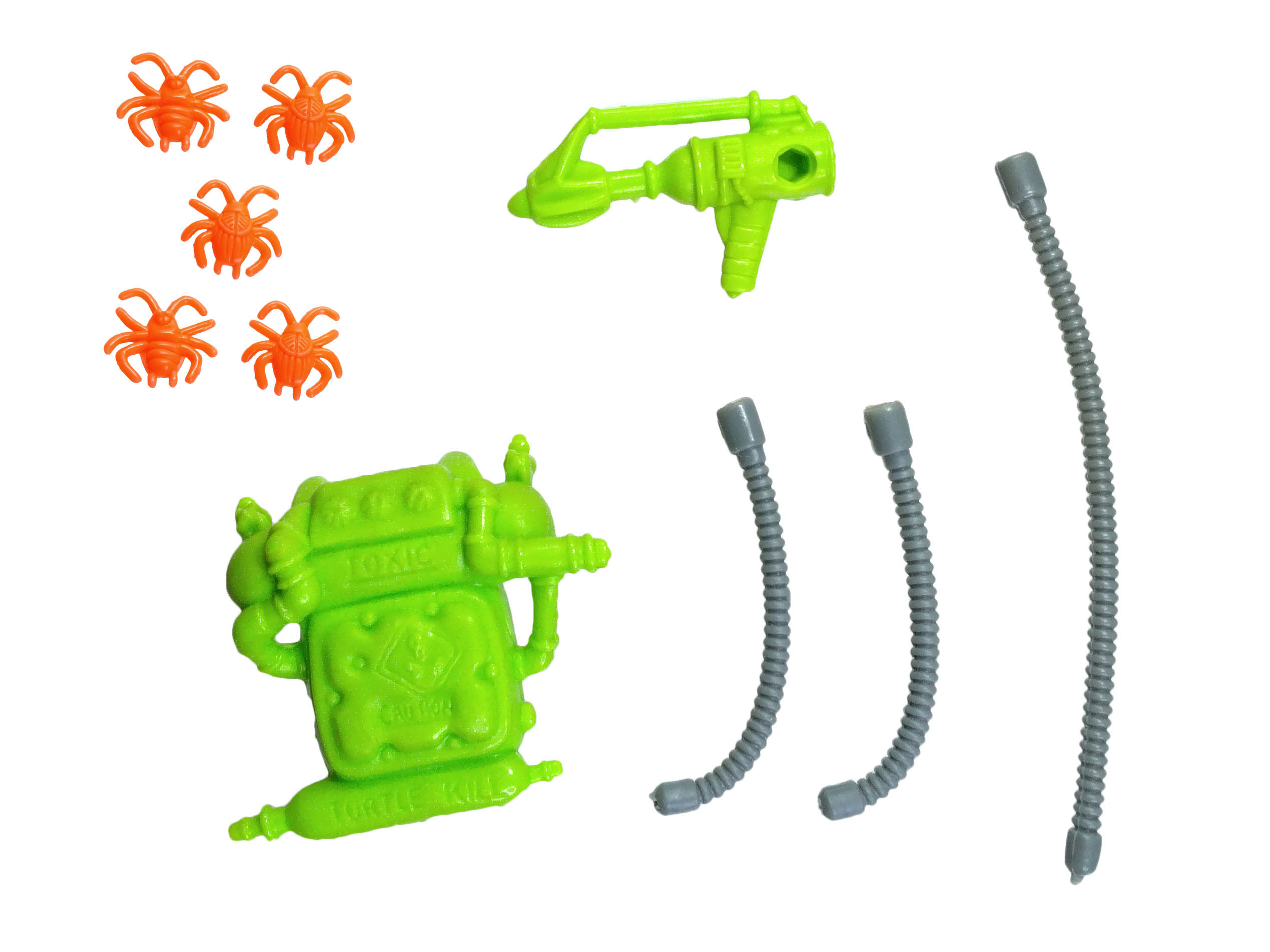 Notre chasseur de cafards cafardisé possède de nombreux accessoires. Nous retrouvons un pack dorsal et son pistolet anti-tortues et trois tuyaux qui permettent de se raccorder. Mais aussi cinq cafards.