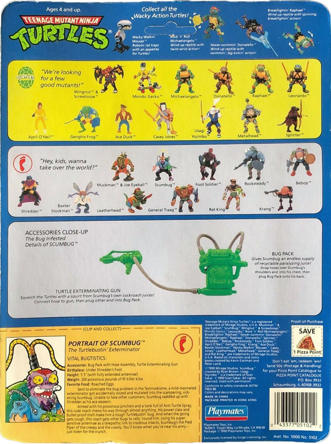 Au quatrième trimestre de 1990, Playmates Toys a sorti le grand jeu et propose 44 figurines au dos de ses blisters. La figurine de Scumbug n’a pas changé. Seul son blister évolue et propose 16 figurines supplémentaires.