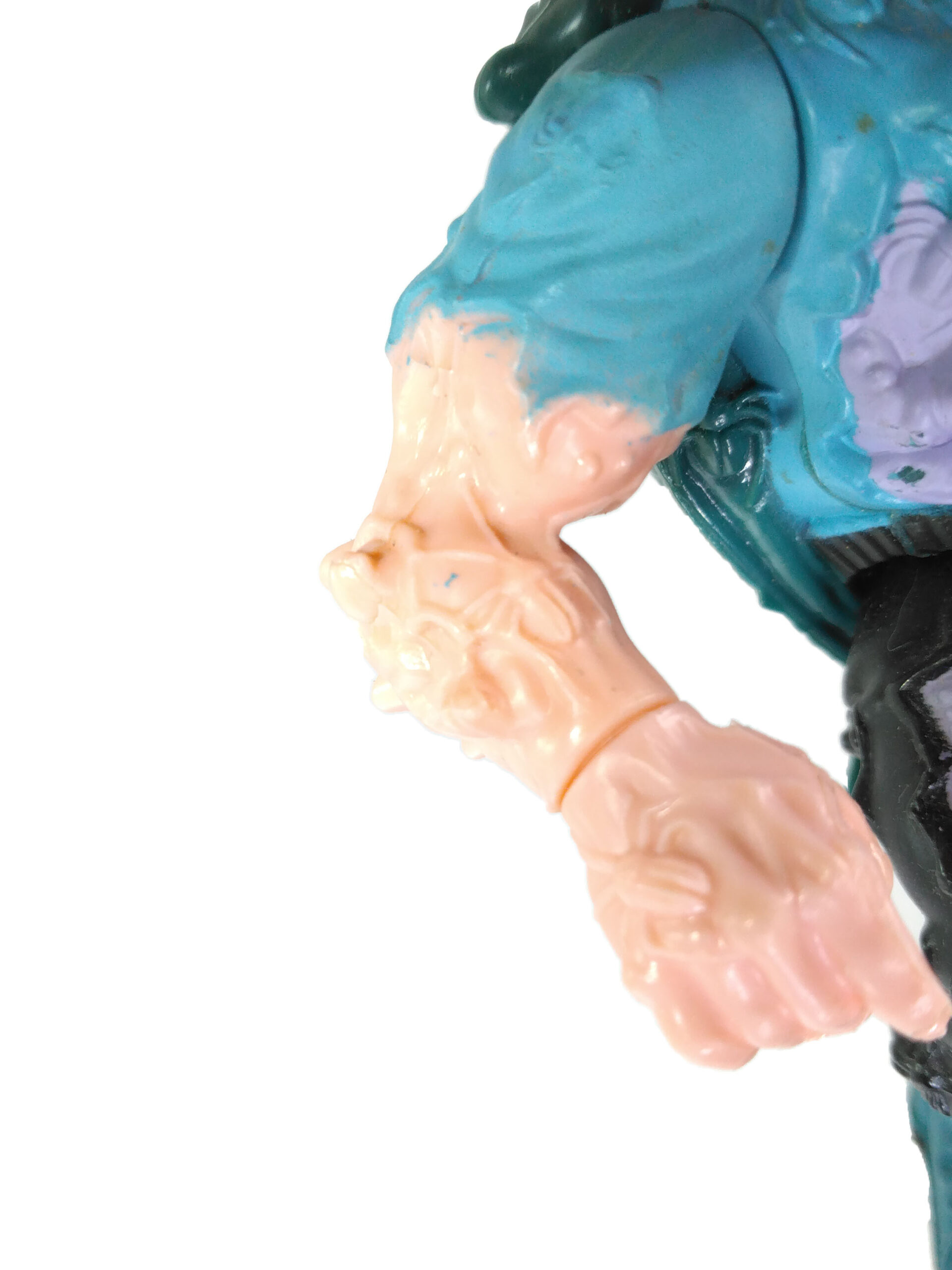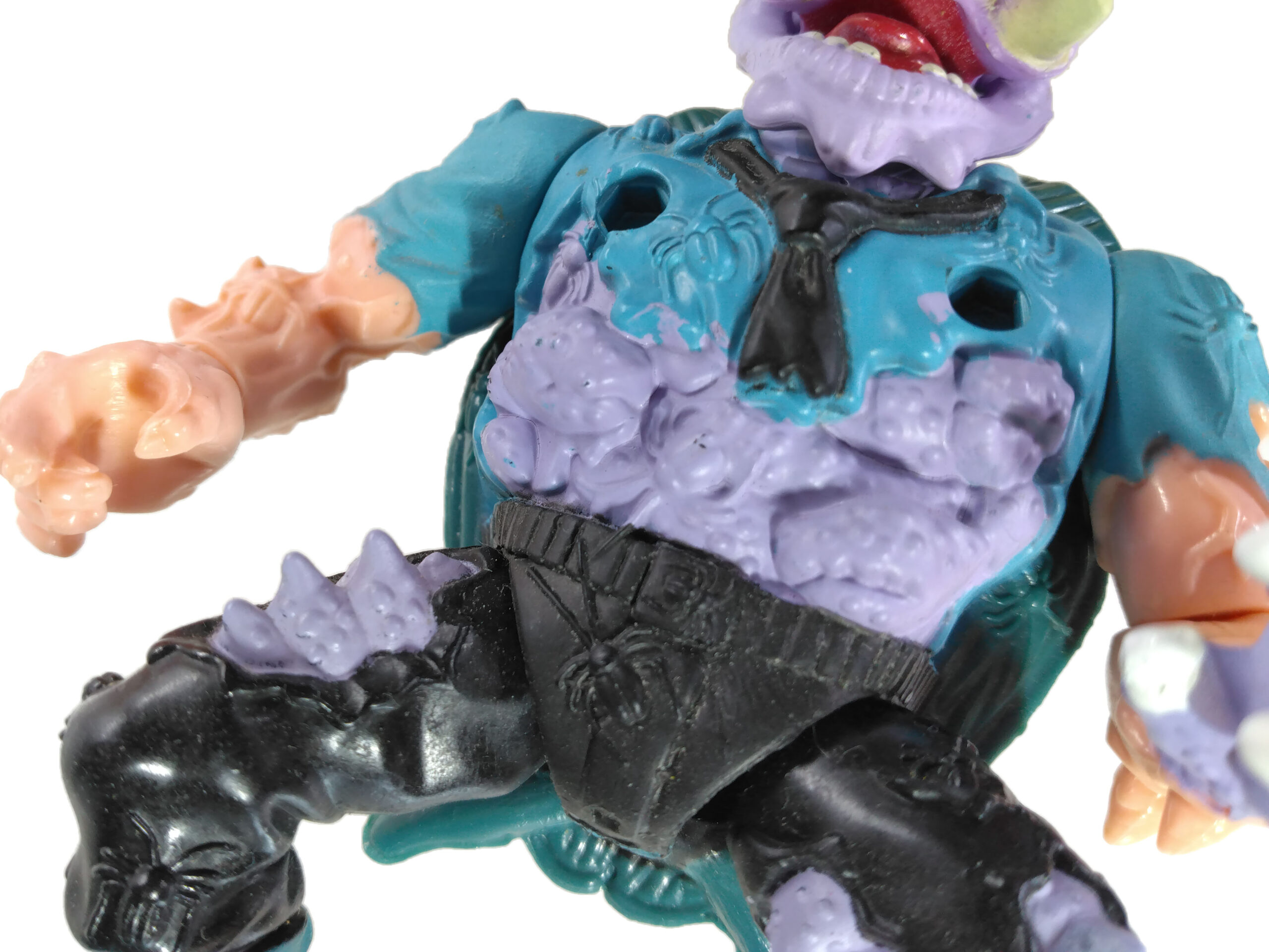 La figurine de Scumbug laisse sur sa faim. J’ai toujours aimé sa sculpture et ce n’était pas une figurine particulièrement courante par chez nous. Toutefois, elle laisse à désirer dans sa réalisation. Mosqueda a proposé une figurine intéressante et totalement dans la lignée de l’univers des Tortues Ninja. Les enfants adorent ces monstres humanoïdes avec des éléments insectoïdes comme une peau déchirée, à l’instar de ses vêtements. La mouche, si tu nous entends ?