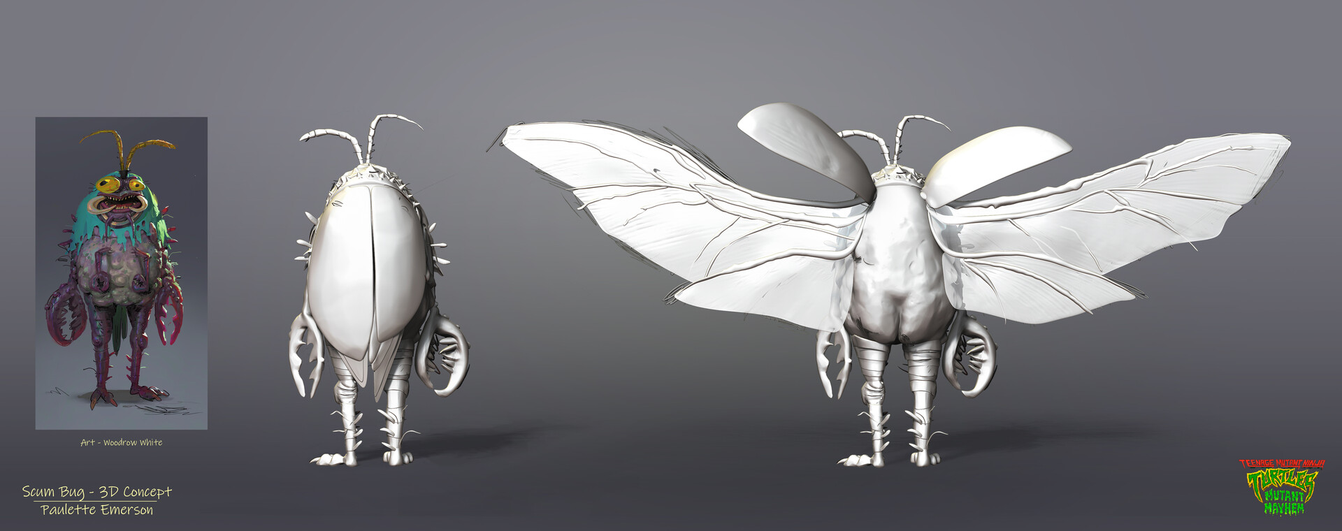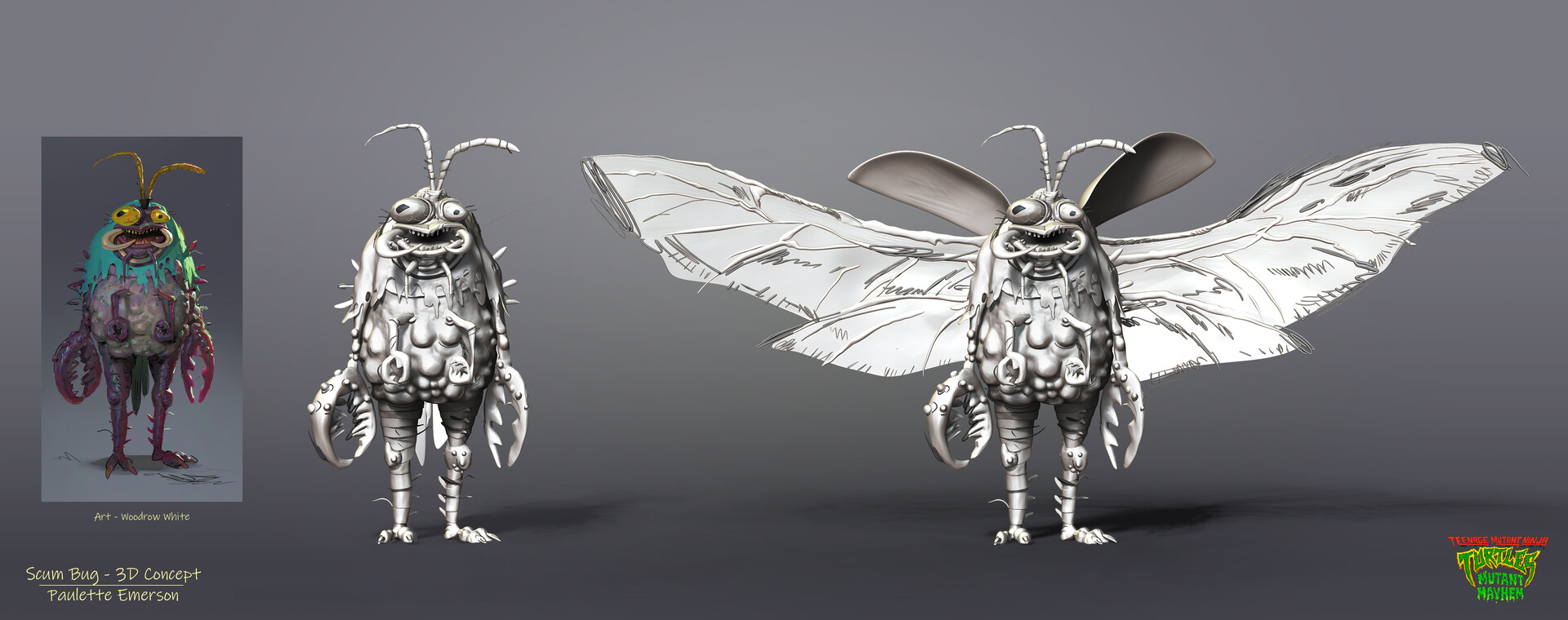 Scumbug était un cafard mutant, fruit des expériences du professeur Baxter Stockman. Ce dernier, scientifique spécialisé dans la génétique, avait dérobé du matériel dans le T.C.R.I. avant de claquer la porte de l’entreprise. Il comptait mettre au point des mutants et en faire sa nouvelle famille. Il créa dans un premier temps celui qui deviendrait par la suite Superfly. Mais aussi un grand nombre d’autres animaux, encore à l’état de bébés lorsque le commando de Cynthia Utrom s’attaqua au laboratoire de fortune de Stockman. La petite mouche mutante vola au secours de son « père » et neutralisa un grand nombre de soldats, dont Spider. Mais le laboratoire explosa. Les recherches du scientifique et son corps furent emportés au T.C.R.I. Superfly quant à lui disparut. Il recueillit les bébés mutants, qui n’avaient pas été vus, et partirent se terrer loin des humains.