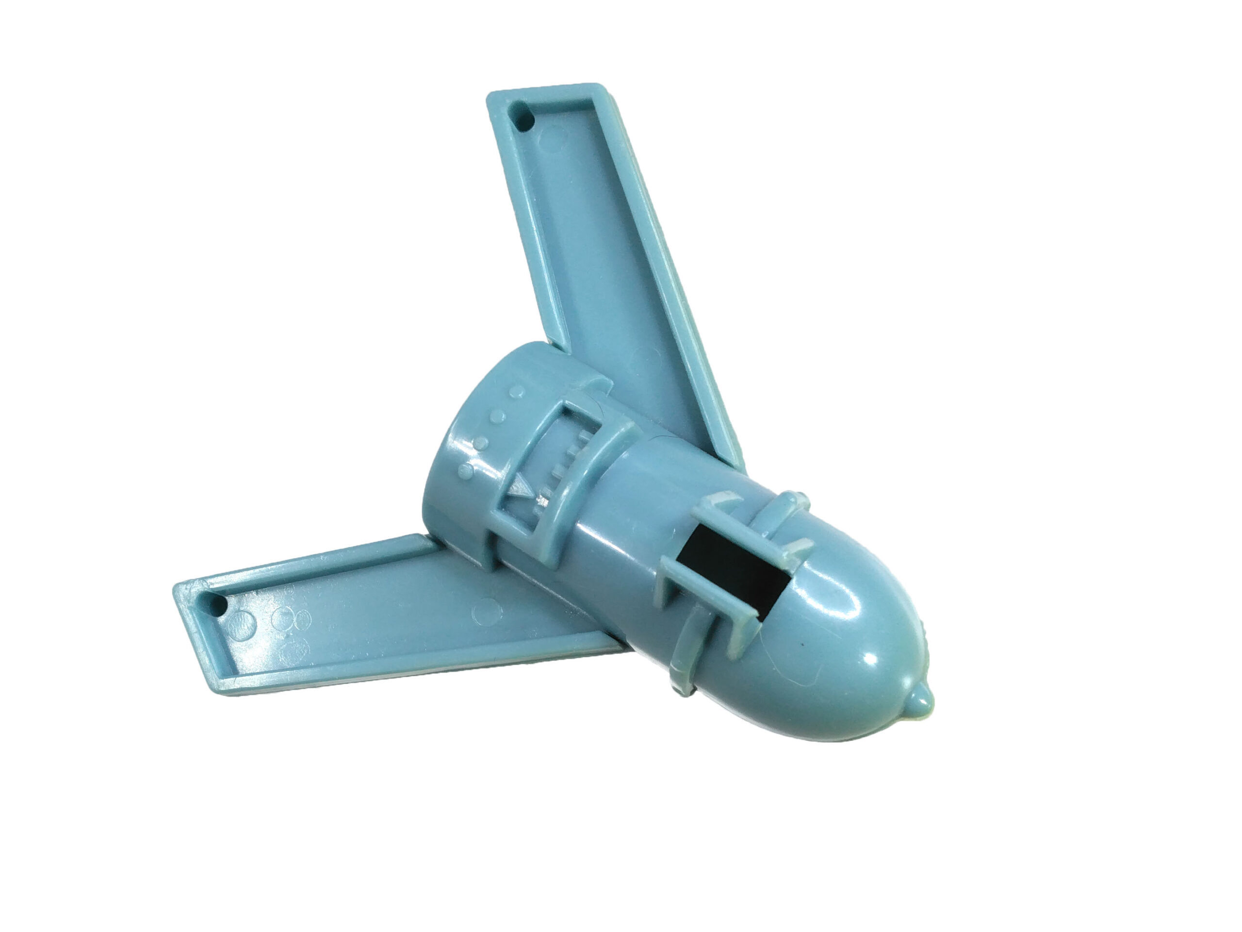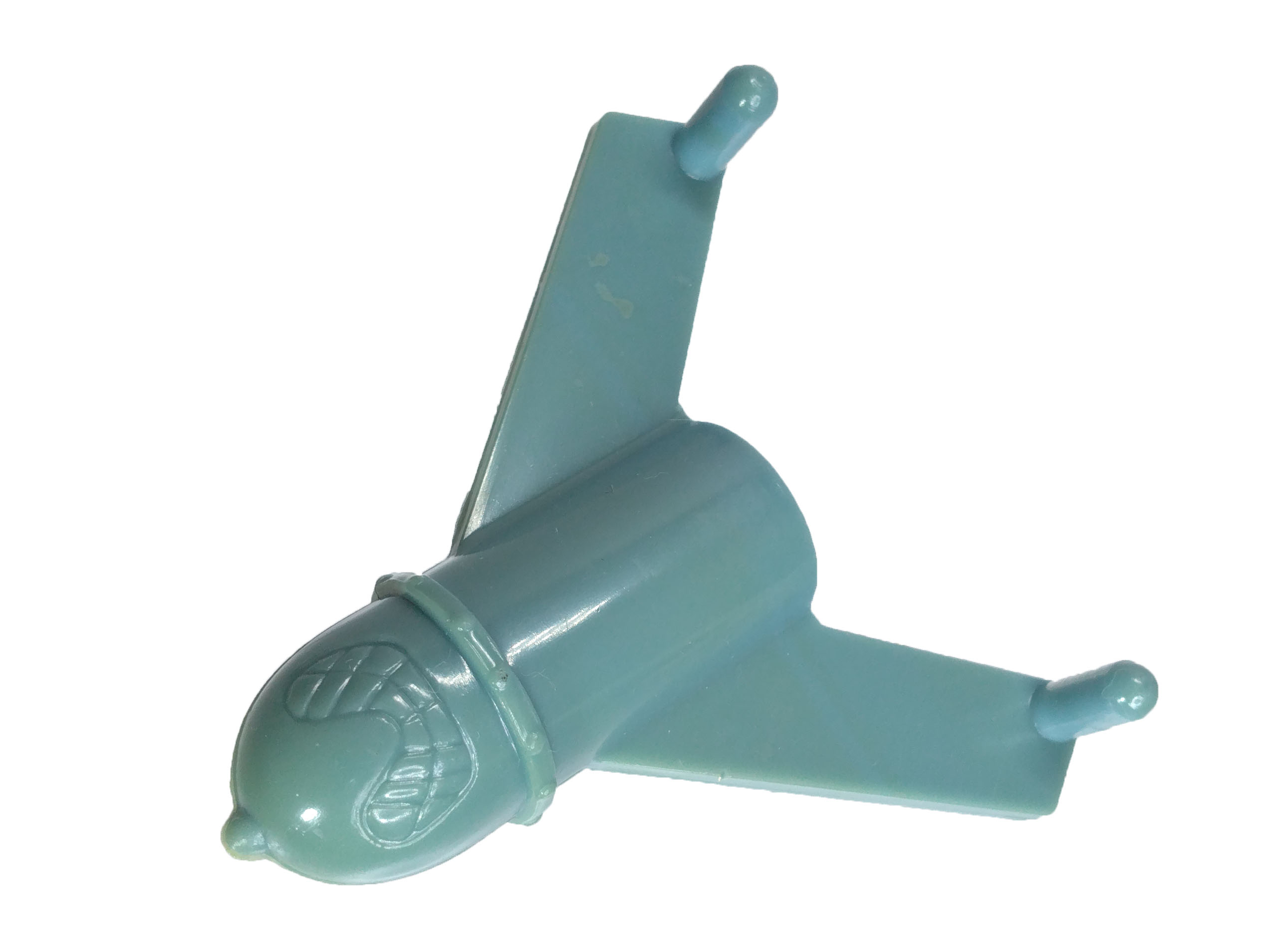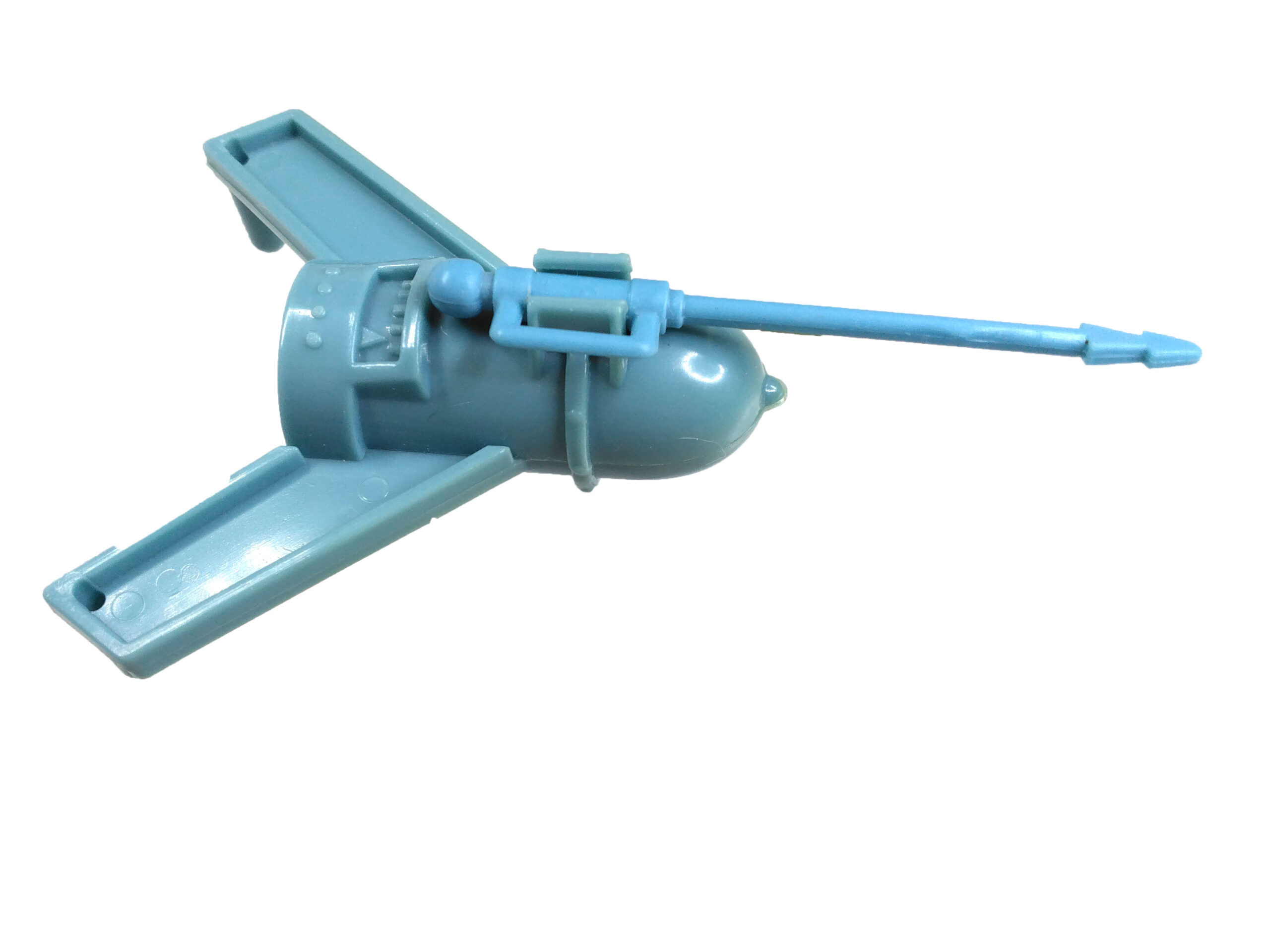Ce petit véhicule est grossièrement sculpté, avec un sourire de requin à l’avant, comme on peut le retrouver sur certaines bombes de la Seconde guerre mondiale. Entièrement moulé dans un plastique gris, il possède une encoche sur la partie haute pour y glisser le harpon, seule arme de Donatello.