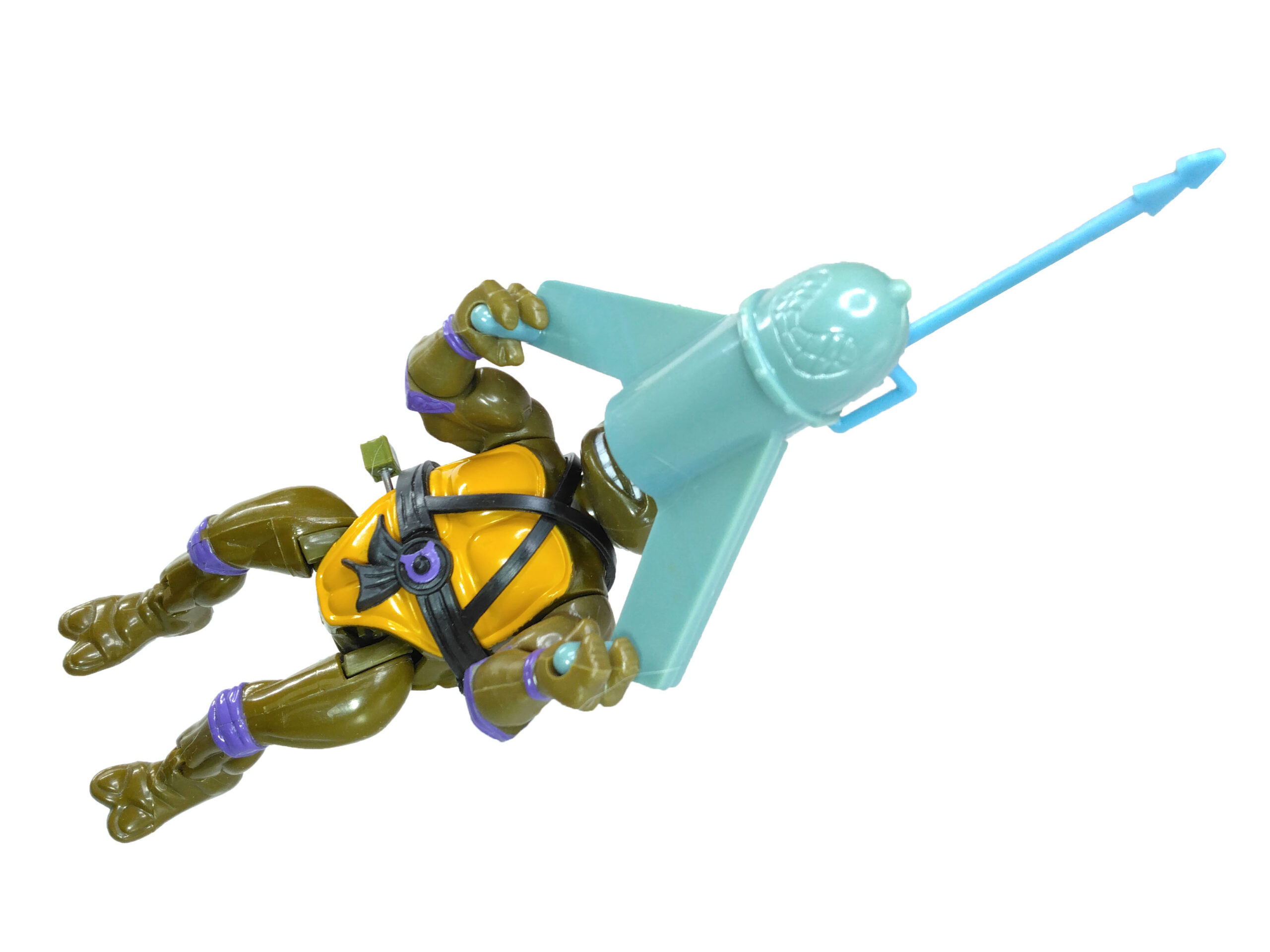 Comme les autres figurines Wacky action, les accessoires sont entièrement dédiés au bon fonctionnement du mécanisme du ninja et de ses actions. Ainsi, Donatello possède un jet aquatique et un harpon.