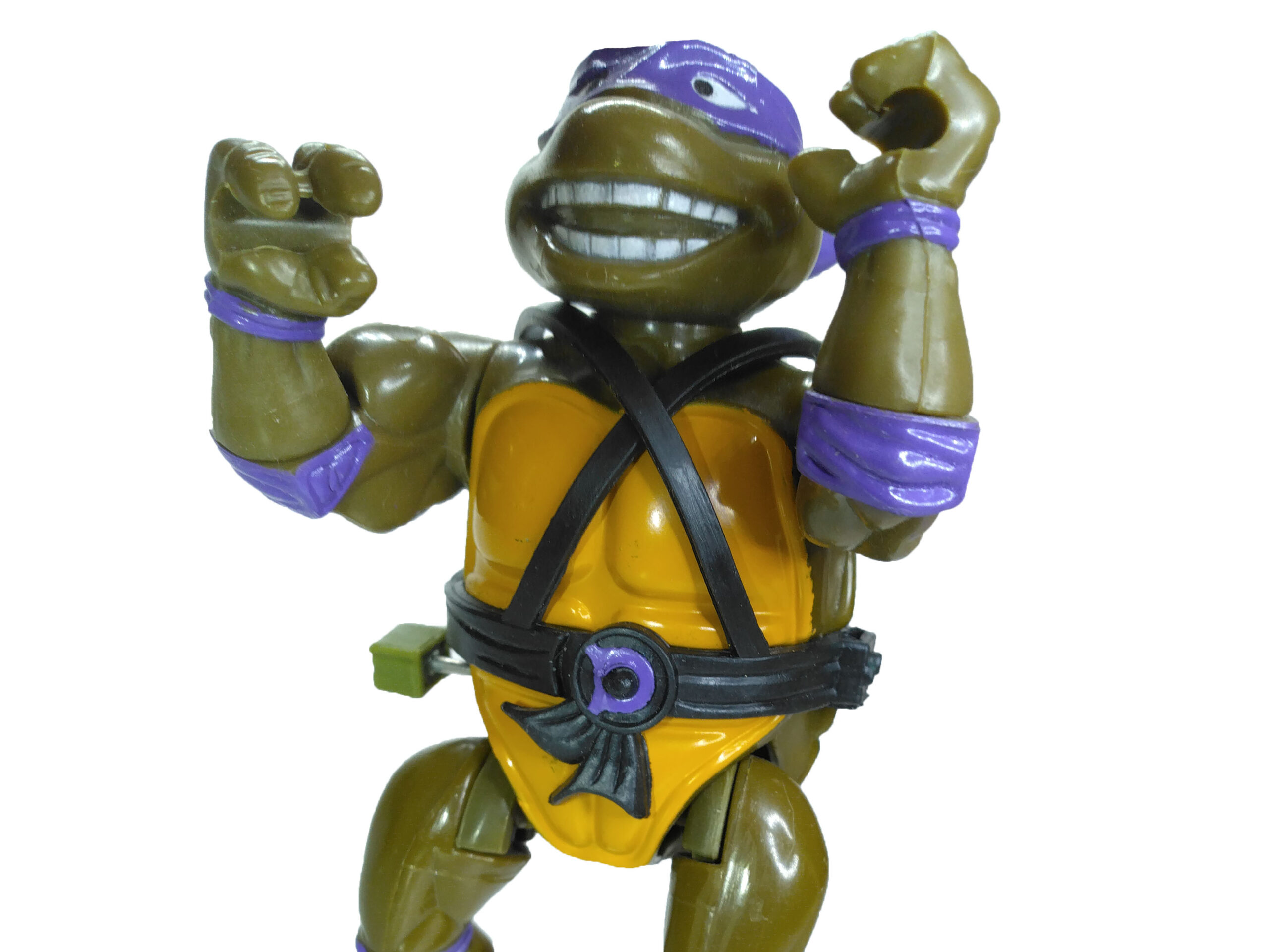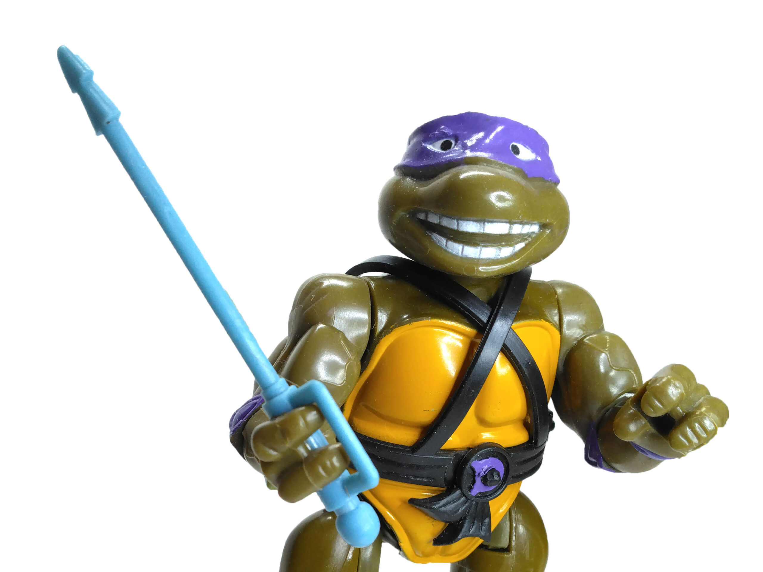 Caché derrière son masque violet et son attitude réservée, Donatello est un inventeur de génie et un ingénieur. Avec l’aide d’ordinateurs mis au rebut, de l’électroménager et même de vieilles ordures, il a mis au point d’innombrables accessoires comme les tortuecom’, le Turtle van, le Turtle blimp et même le portail interdimensionnel capables d’atteindre des dimensions alternatives !