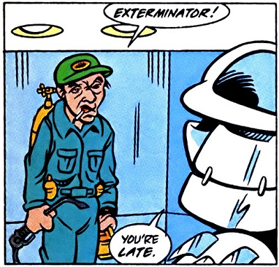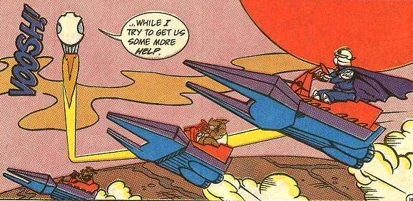 Parallèlement, les tortues du futur vinrent chercher leurs homologues du passé pour retrouver leurs frères capturés. Les six tortues, Splinter et Ninjara attaquèrent le quartier général d’Armaggon (TMNT A. #43) et défaire Shredder et Verminator-X. L’homme fut dégagé par un torrent d’eau au large de la ville (TMNT A. #44). Là, il retrouva le Rat King avec qui il avait fait équipe et apprit qu’il était le jeune enfant qui avait perdu le bocal contenant les tortues dans les égouts. Il savait à quelle époque remonter pour empêcher que ses ennemis puissent venir à bout de ses projets (TMNT A. #76).