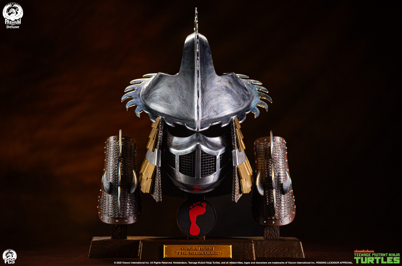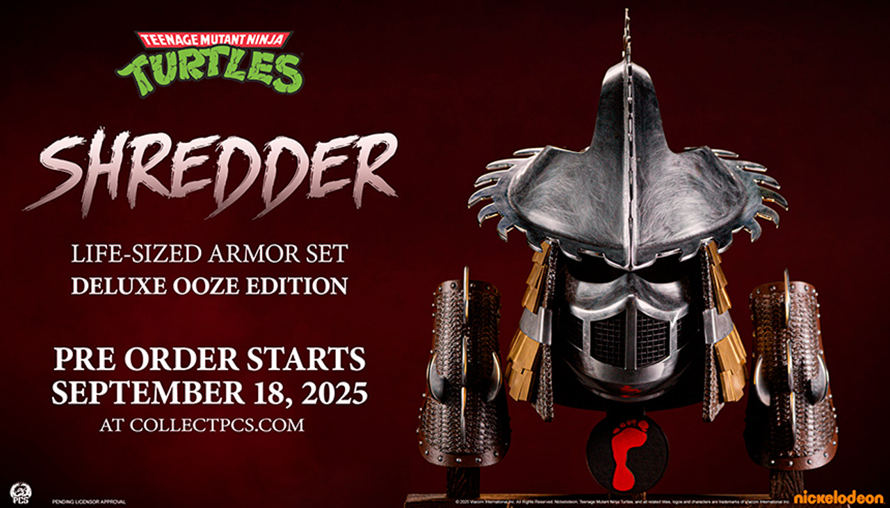 Le 18 juillet 2025, PCS a annoncé travailler sur une armure de Shredder sur les réseaux sociaux. Un premier visuel a été présenté par le fabricant la semaine suivante lors d’une conférence de la Comic Con, confirmant le caractère grandeur nature de la pièce. À ce stade, seule l’armure du premier film avait été annoncé.