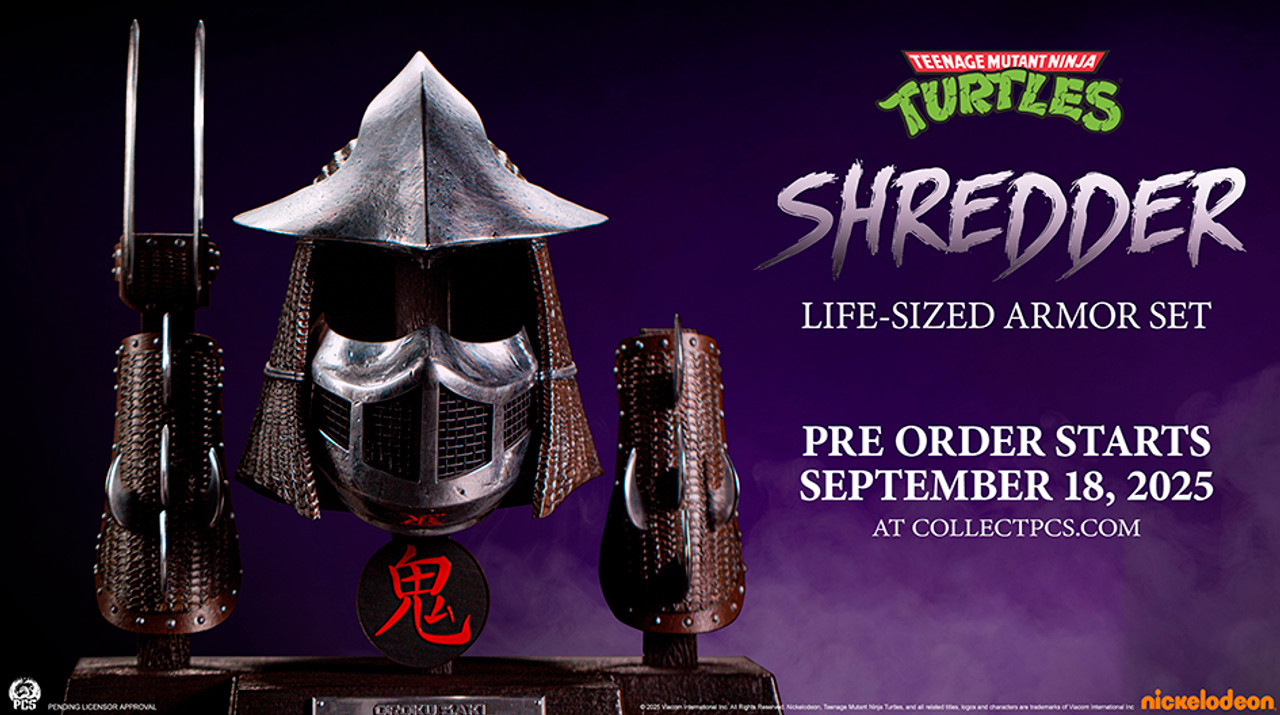 Le 18 juillet 2025, PCS a annoncé travailler sur une armure de Shredder sur les réseaux sociaux. Un premier visuel a été présenté par le fabricant la semaine suivante lors d’une conférence de la Comic Con, confirmant le caractère grandeur nature de la pièce.
