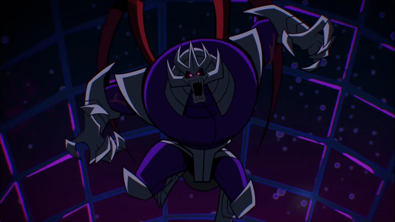 La créature, assoiffée de sang, fit régner le chaos durant de nombreuses années avec son Foot Clan. Sa fille, encore enfant lorsque son père avait pactisé avec l’extraterrestre, fonda le clan Hamato pour le vaincre. Après de nombreuses années d’entraînements, Karai pouvait rivaliser face au démon. Mais elle se rendit compte qu’elle ne vaincrait pas Shredder sans se sacrifier. Elle parvint à enfermer la créature dans une dimension parallèle. Pour s’assurer qu’il n’en sorte jamais, elle veilla sur lui (Finale, part. 2 : Shreddy or not, S2 E22).