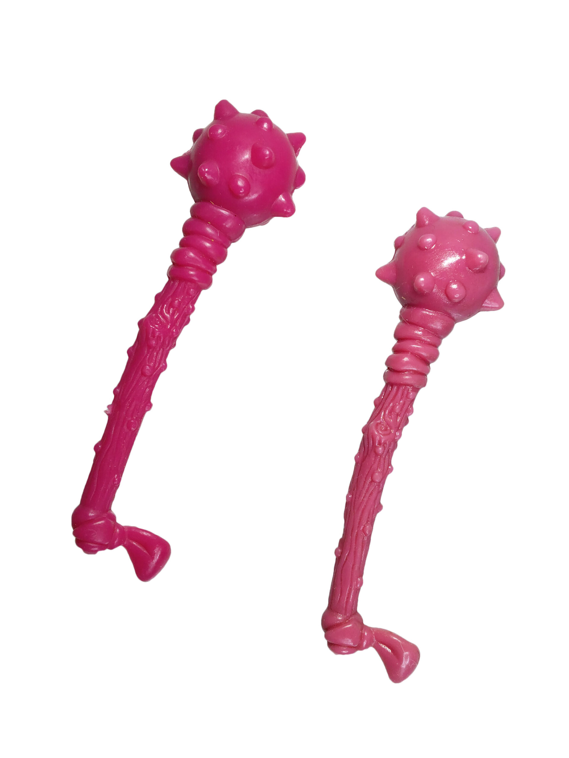 Nous retrouvons une lourde masse hérissée de pics, un saï tordu, un nunchaku dont les chaînes font penser à du fil barbelé ou à des vertèbres, et un couteau cranté. Ce dernier était vraisemblablement destiné au triceraton à l’origine ! Tous ces accessoires font penser aux armes principales des tortues, dans une version détournée et plus létale.