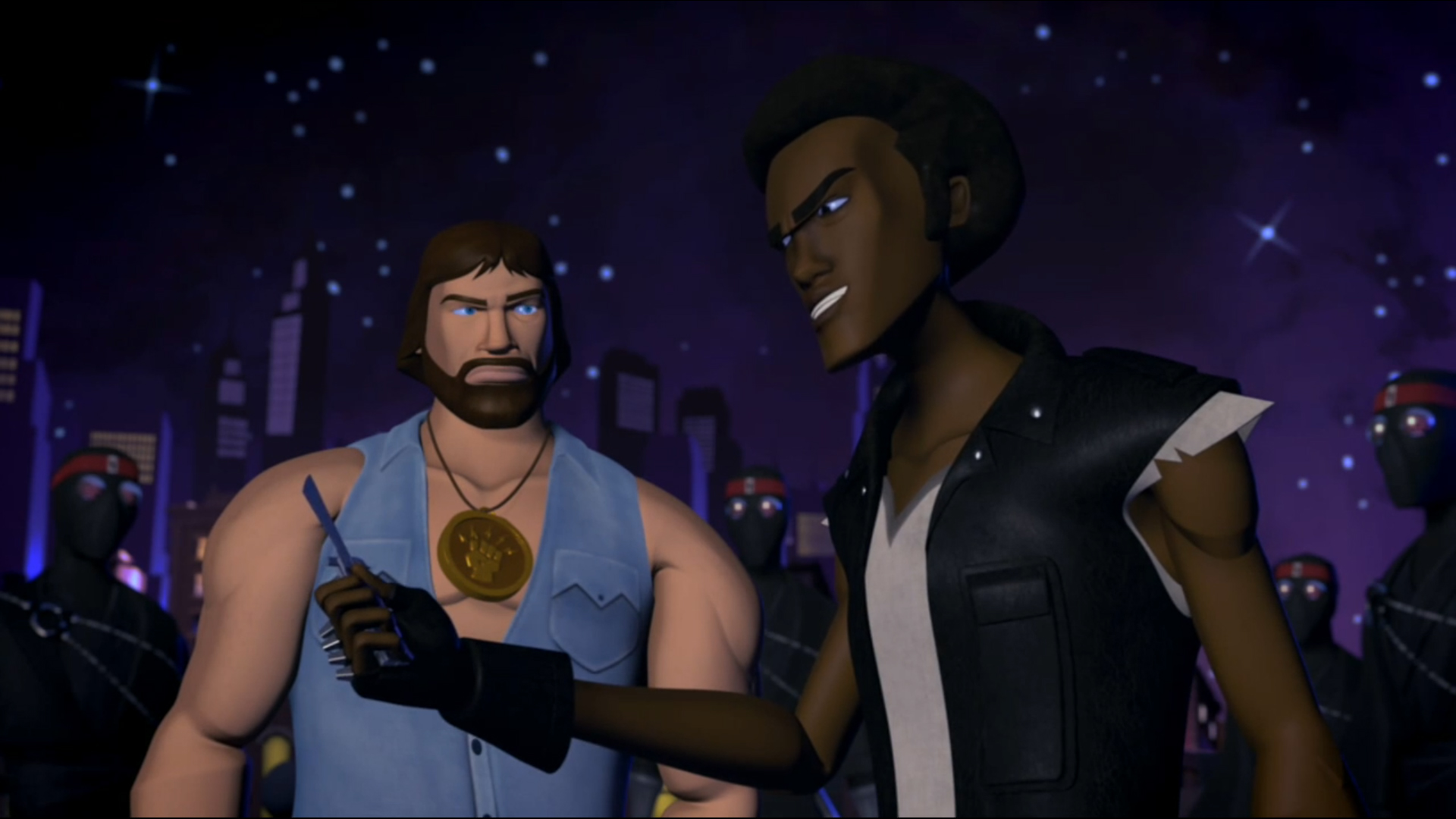 - Un seul ninja Foot retire sa cagoule pour montrer son visage au cours de la série. Il s’agit de Timothy, le Pulvériseur (Le retour du Pulvériseur, S1 E22).