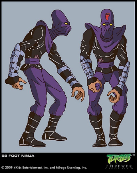 Pour expliquer cette utilisation de leurs armes sans pour autant choquer les enfants qui assistaient au dessin animé, la production a décidé d’utiliser des robots ninja. Lors de leur première rencontre avec les fantassins, les tortues étaient réticentes à les combattre franchement, jusqu’à découvrir qu’il ne s’agissait pas d’humains (Sur la piste des tortues, S1 E1). On retrouve ce même principe dans le dessin animé de 2012 avec les kraangs dans un premier temps puis les Foot-bots ou encore dans le dessin animé de 2018 avec les Foot origamis.
