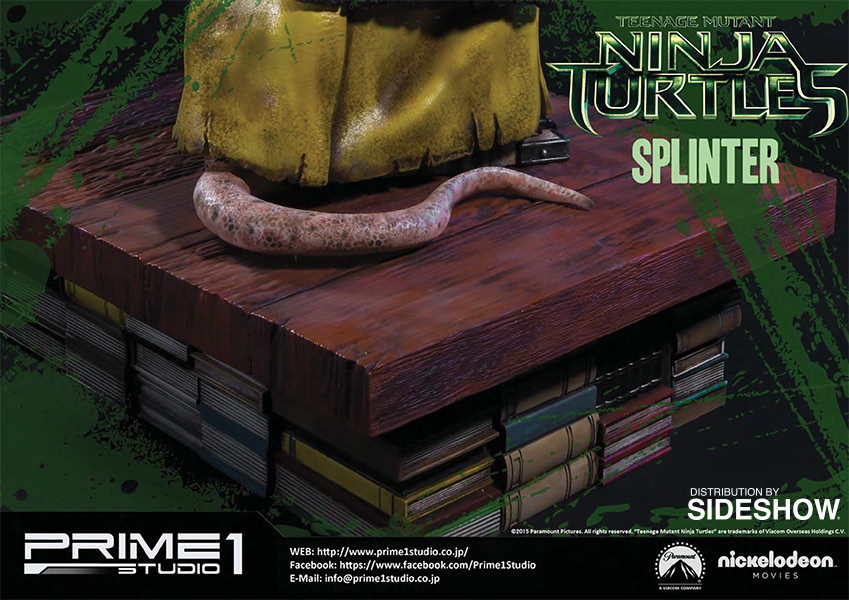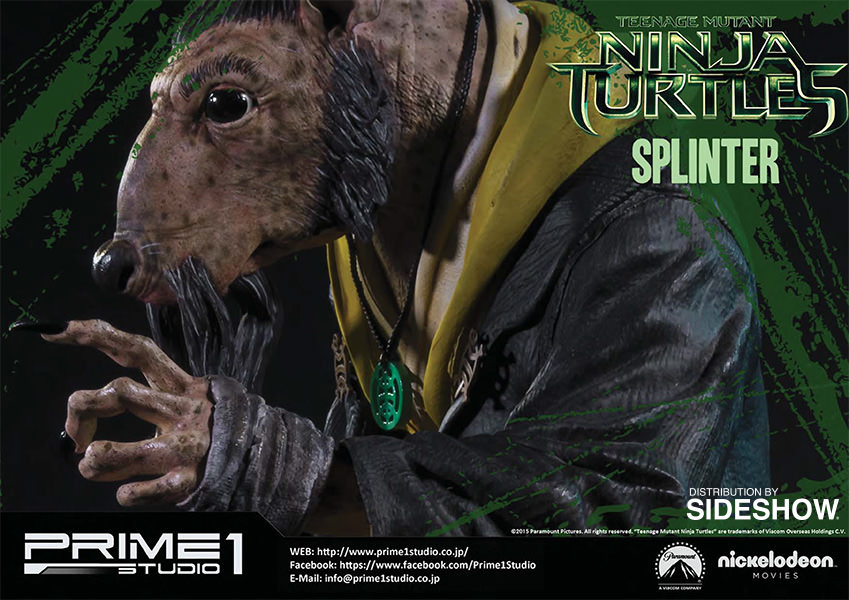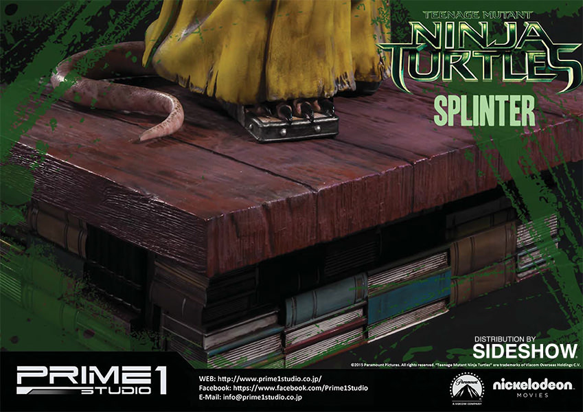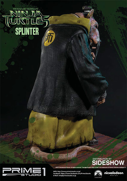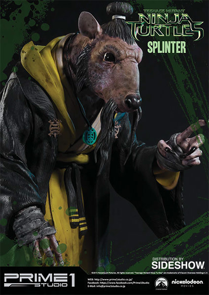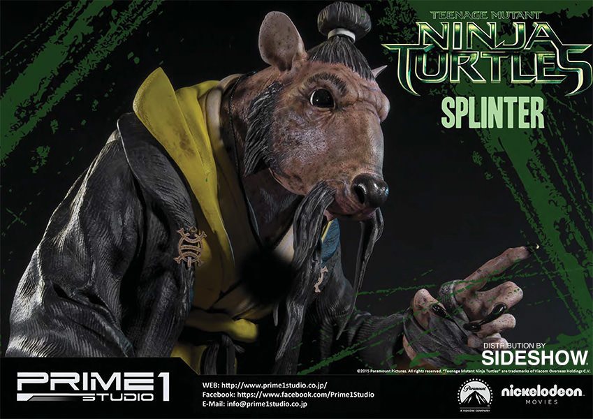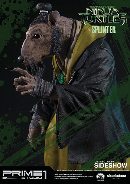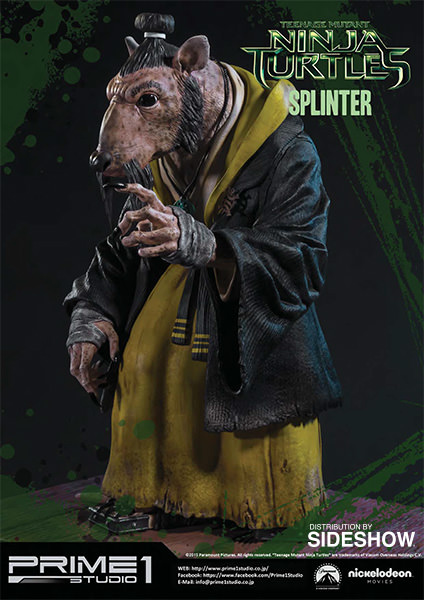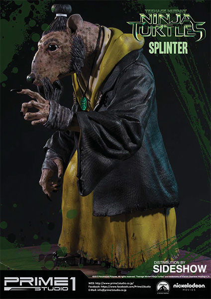 La statuette de Splinter est l’une des cinq pièces créées par Prime 1 Studio à l’image des personnages du film Ninja Turtles de 2014. Réalisée en polystone, elle mesure 43 cm de haut, soit la plus petite des statuettes. Un système lui permet de bouger ses yeux, et ainsi adapter son orientation. Contrairement aux tortues, cette statuette ne dispose pas d’un socle pouvant s’assembler avec les frères. Il s’agit d’une pièce à part.
