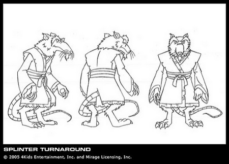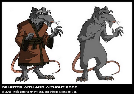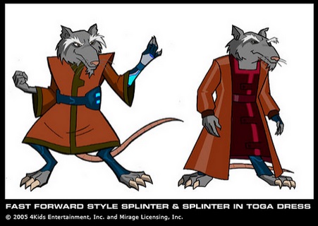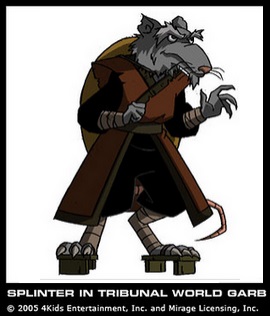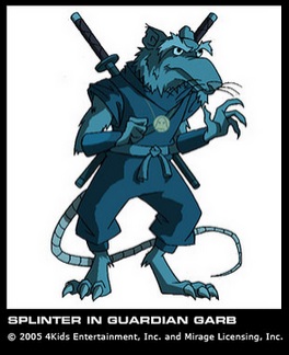 Splinter est le maître et le père adoptif des quatre Tortues Ninja. Il les a élevé et leur a enseigné les arts martiaux, en se servant de ce qu’il avait pu voir de son propre maître, Hamato Yoshi. Dans cet univers, Splinter est un rat au pelage gris, première fois dans les dessin-animé des Tortues Ninja.