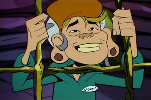 Stewart était un livreur qui était entré dans la Ville Cachée par accident. Il s’était fait capturer pour servir de cobaye au baron Draxum afin de tester ses oozequitoes. Le moustique, chargé de mutagène, l’avait transformé en poisson mutant avant qu’il ne prenne la fuite (Mystérieuse Pagaille, S1 E1).