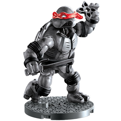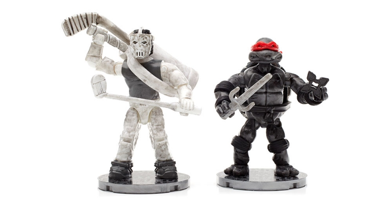 Observation: Cette minifigurine de Raphael est différente de celle du set en l’honneur de la tortue. De peau plus foncée sa carapace est en métal. Casey Jones possède un sac de golf avec une batte de baseball, une crosse de hockey et un club de golf.