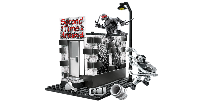 Ce set permet aux fans de rejouer la rencontre entre Raphael et Casey Jones du comic original. Le bâtiment mis à l’honneur ici n’est pas inconnu des fans puisqu’il s’agit de la boutique Second Time Around d’April O’Neil. Ce délicieux détail permet de rejouer par la même occasion le combat entre les tortues, Casey et April conte le Clan des Foot.