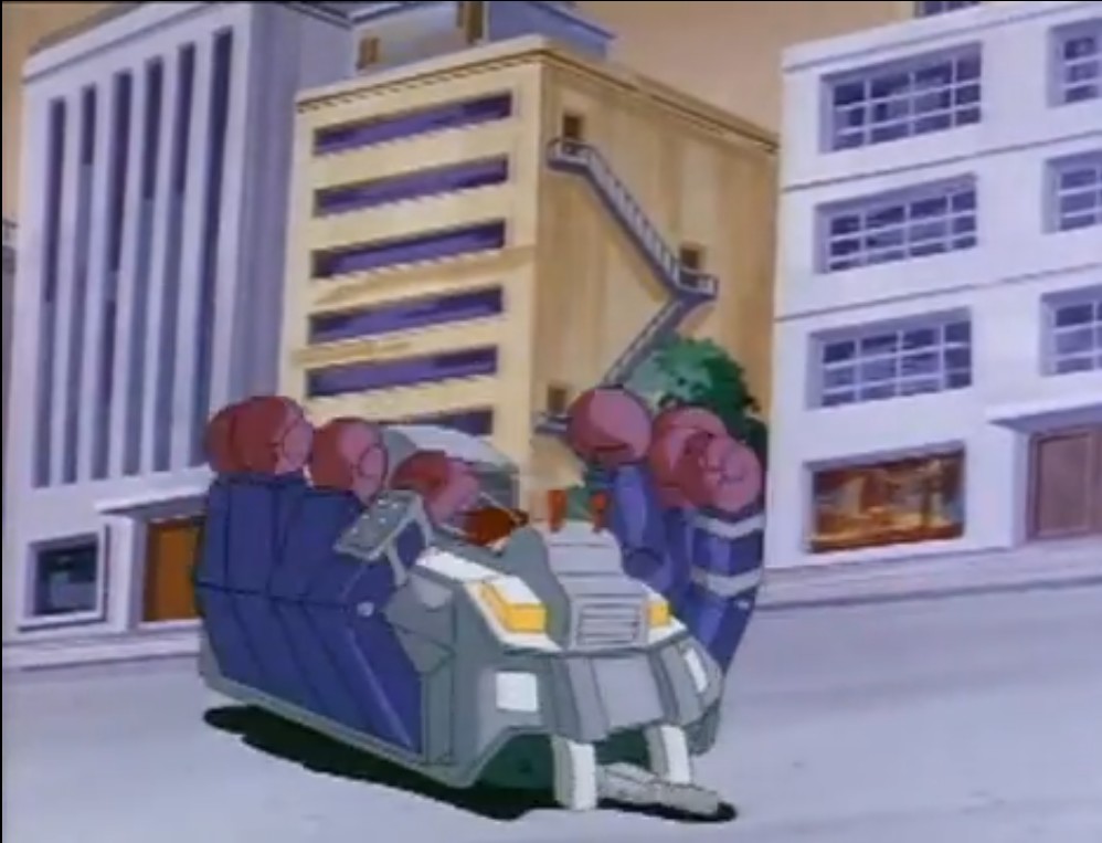 Hélas pour lui, les tortues étaient cette fois aidées par Casey Jones, un nouveau justicier peu commode qui s’attaquait directement au robot de l’extraterrestre. Perçant un trou dans la carlingue de la machine, les nano-robots détruisirent le Super Knuckelhead (Casey Jones, hors la loi, S3 E23).