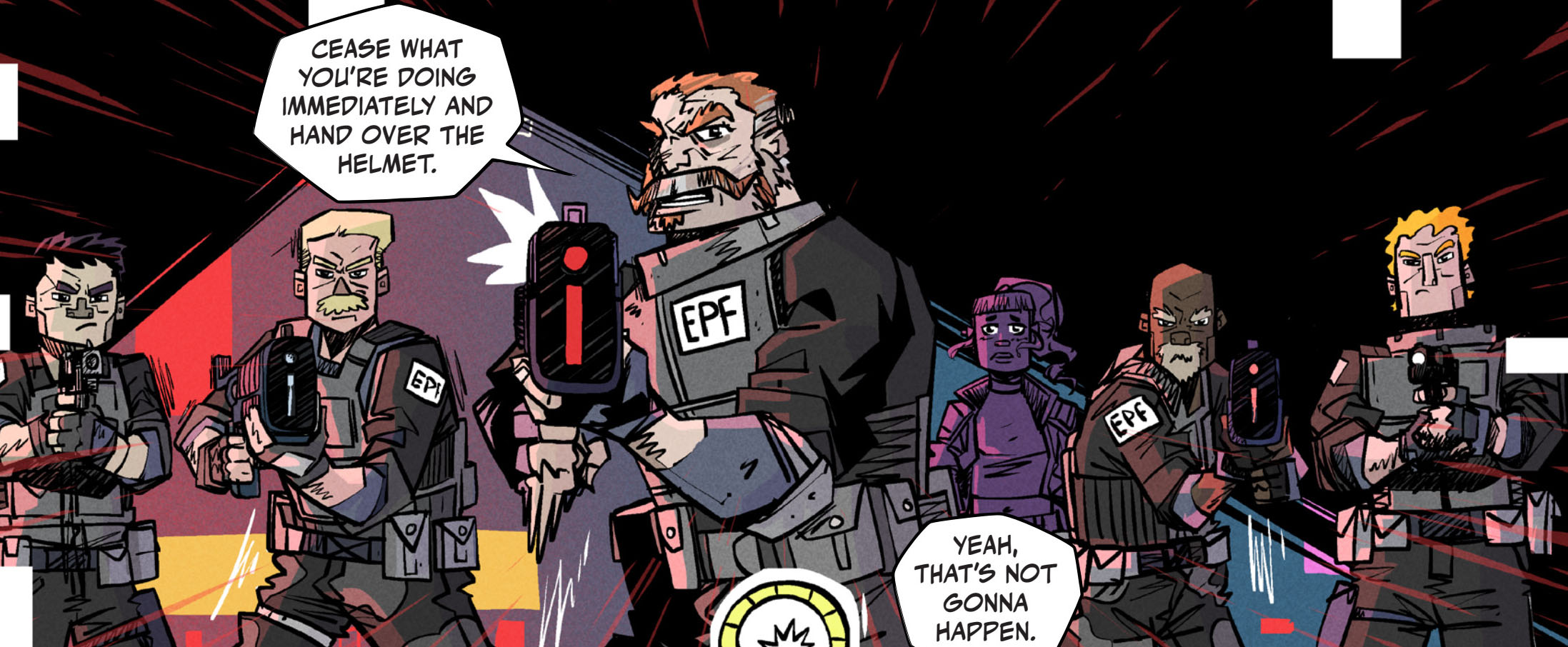 April conduisait ses amis et leur nouvelle rencontre dans son bureau au lycée. Le robot en profitait pour recharger ses batteries sur le secteur. Il était temps pour lui de leur expliquer d’où il venait.Il n’avait pas toujours été un robot. L’année précédente encore, il n’était qu’un étudiant passionné de technologies du nom de Zayton Honeycutt. Peu avant de recevoir son diplôme, il avait été recruté par l’EPF pour approfondir ses recherches autour d’un casque à ondes mentales. Il était assisté d’un robot du nom de S.A.L., qu’il parvenait petit à petit à contrôler par la pensée. Le général Blanque était ravi de voir le développement de ces recherches fonctionner aussi bien et espérait pouvoir adapter ce casque sur des organismes vivants, comme des humains, des animaux ou des mutants. Et dans ce sens, le général avait bien l’intention de mettre la pression sur les épaules de Honeycutt, qui ne trouvait pas cette voie éthique. Lonae, qui l’assistait déjà, lui jetait un regard abattu avant de quitter le laboratoire à son tour.