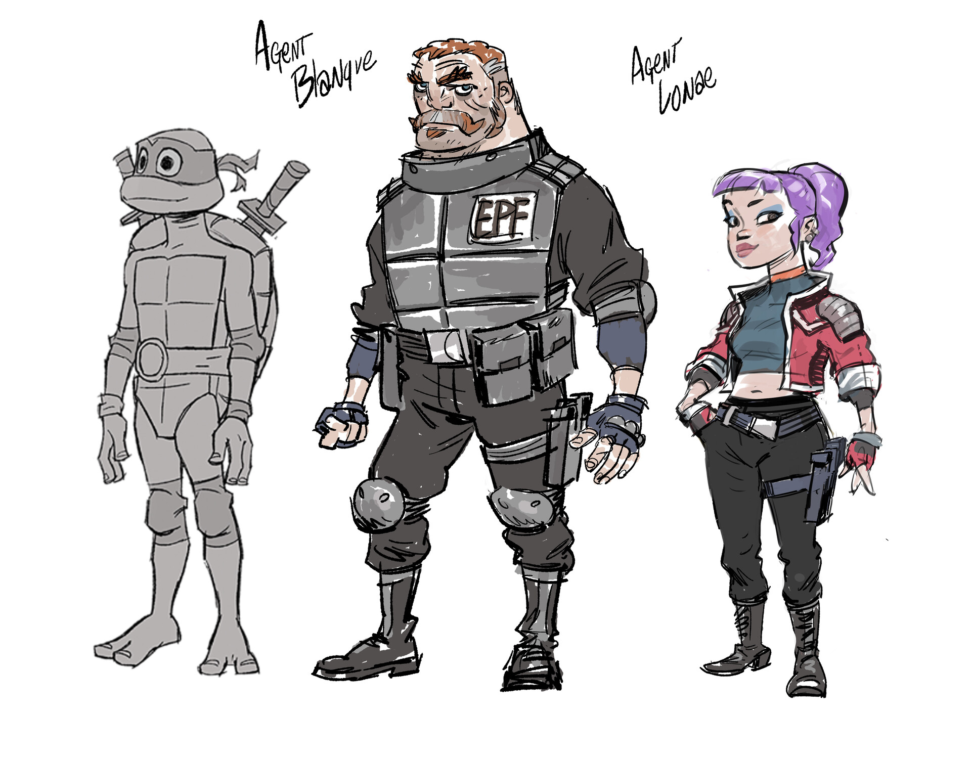 - En interview pour Gamesradar, Andrew Joustra précise que le professeur Zayton Honeycutt a volontairement été rajeuni pour coller aux tortues de cet univers, passant à 19 ans (source).