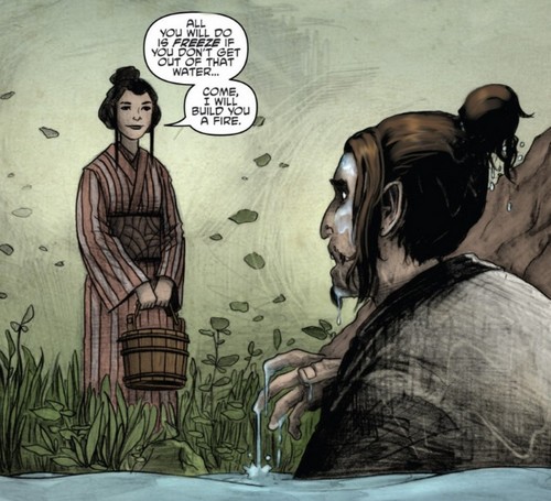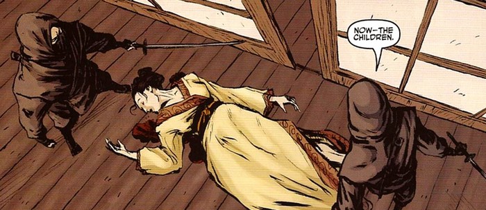 Fiche d’identité Réside : Japon médiéval. Espèce : Humaine. Caractéristiques : Épouse d'Hamato Yoshi et mère de leurs quatre fils. Vie : XVIe siècle. État : Tuée par les ninjas du Foot Clan sous les ordres d'Oroku Saki (TMNT #5). Vient en aide à sa famille sous sa forme spectrale jusqu'à trouver la paix avec son époux. | Première apparition Dernière apparition Créateurs | ![]() |