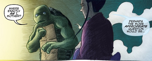 Au moment où il intervint, Shen disparut. Le priant de le suivre, ils empruntèrent tous deux le chemin sombre et Donatello put reprendre ses esprits (TMNT #45).