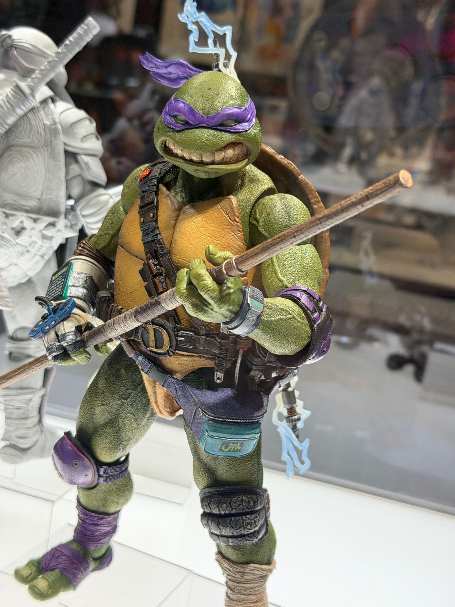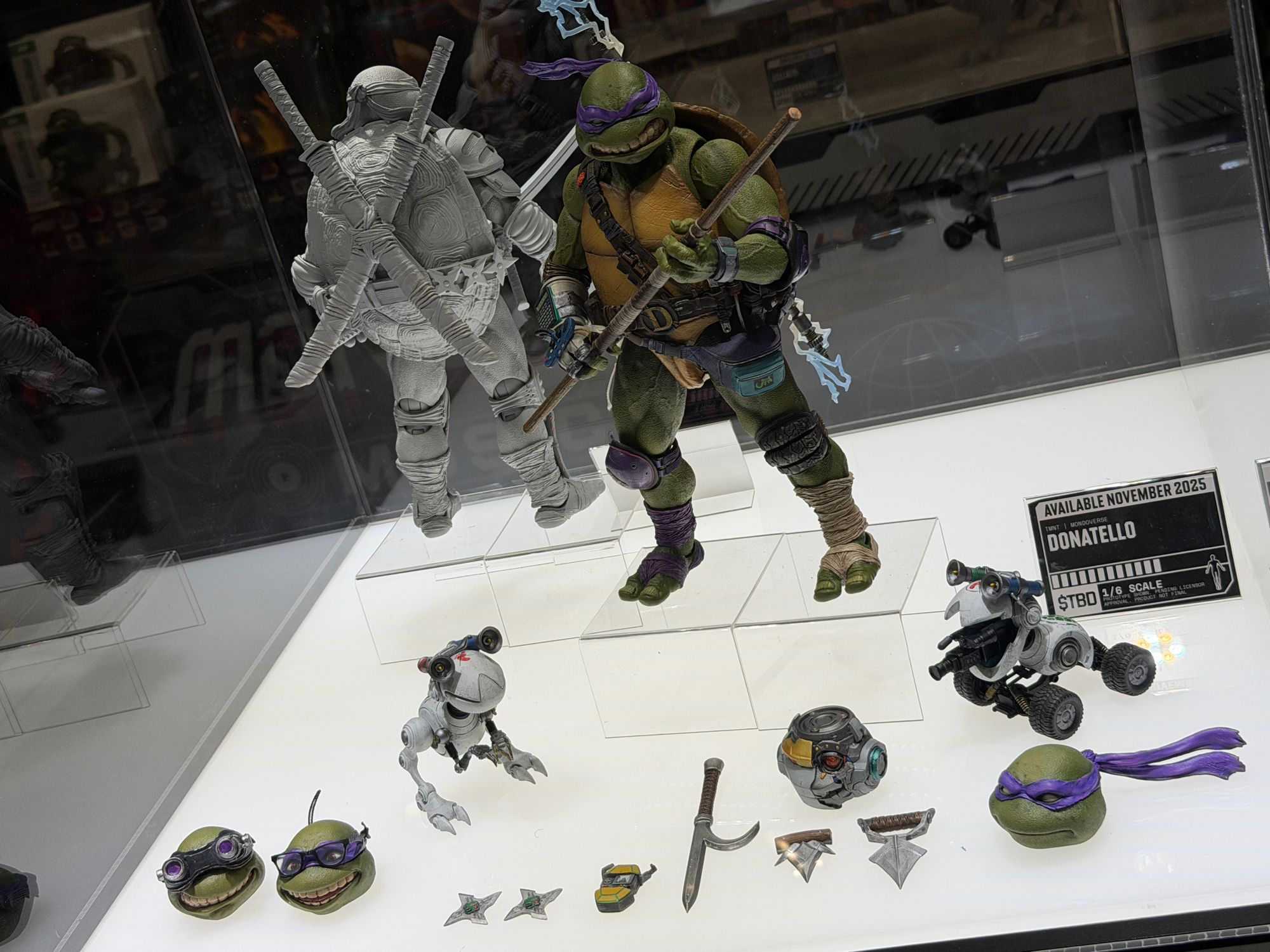 Lors de la Comic Con de San Diego, l’année suivante, quelques informations complémentaires sont venues enrichir cette gamme, avec l’annonce d’autres figurines, mais aussi du scénario dans lequel elles s’inscrivaient. Il ne s’agissait pas d’une énième adaptation de la licence, mais d’un concept plus complexe, qui devrait trouver écho chez les fans : « Que se serait-il passé si Shredder avait survécu après le film de 1991 et qu’il s’était allié à Krang ? ». Le prototype non peint de Donatello était également exposé. Pour la version achevée, les fans ont dû attendre la Comic Con de New York, en octobre 2025 et la promesse du lancement prochain des précommandes de la figurine.