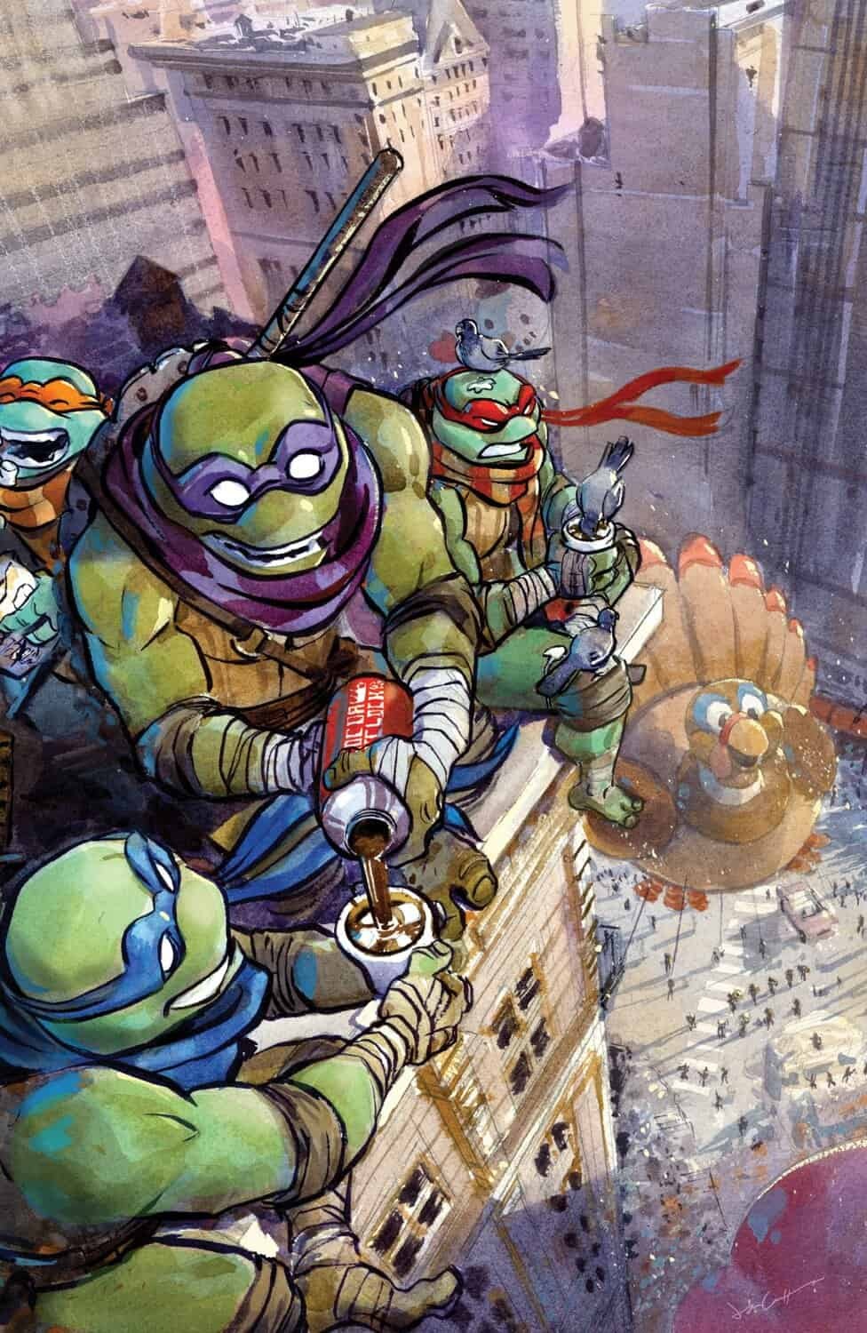 Le soir venu, Casey faisait équipe avec Titus, un des mutants de Lao Ban, pour tendre un piège aux responsables de ces enlèvements. Ils observaient un des leurs, Steve, marcher seul dans la rue. Ce dernier était en communication radio mais ne voyait rien d’anormal. Le justicier au masque de hockey, trop occupé à regarder ce qu’il se passait en contrebas, n’avait pas remarqué que son partenaire avait été neutralisé. Raphael bondissait vers lui, furieux de voir que son ami faisait équipe avec l’un des pires malfrats de la ville. Les esprits s’échauffaient très vite et la tortue voulait ramener Casey dans les égouts. Ce dernier refusait et lui assénait un coup de tête.