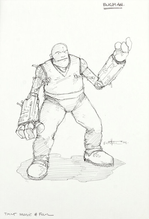 Lorsque l’on regarde du côté des concepts arts réalisés par Kevin Eastman, les premiers jets (Fig. 1 à 3) semblent s’orienter vers un personnage assez différent. Potentiellement un extraterrestre. Du côté de son humeur, Kirby aurait certainement été un personnage assez violent. Lors d’une enchère des ébauches scénaristiques par Eastman en 2012, le cocréateur des tortues a décrit ce film comme bien plus sombre que les précédents, clairement pas pour les enfants. Kirby, la cinquième tortue, aurait été un personnage extrêmement brutal10.