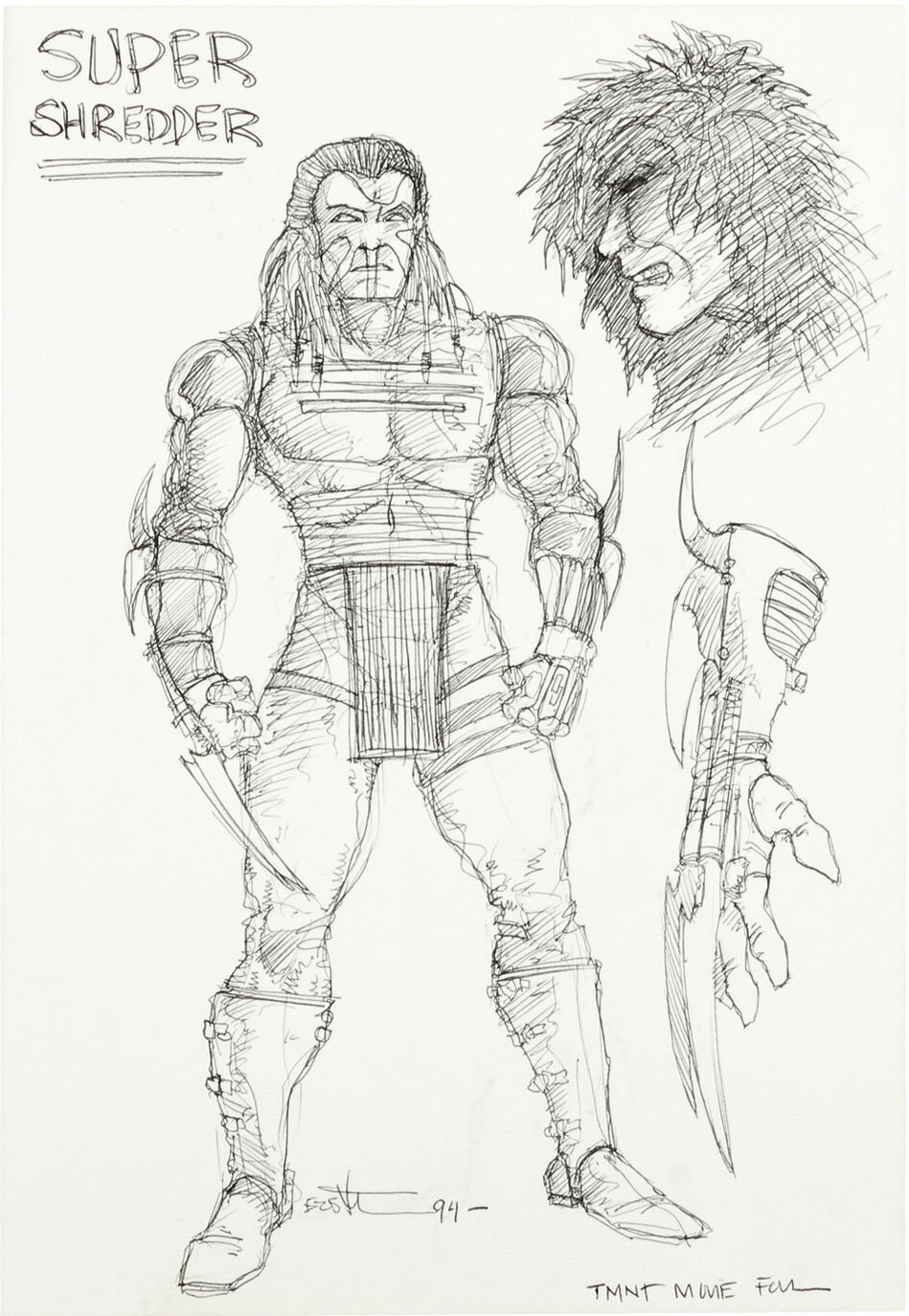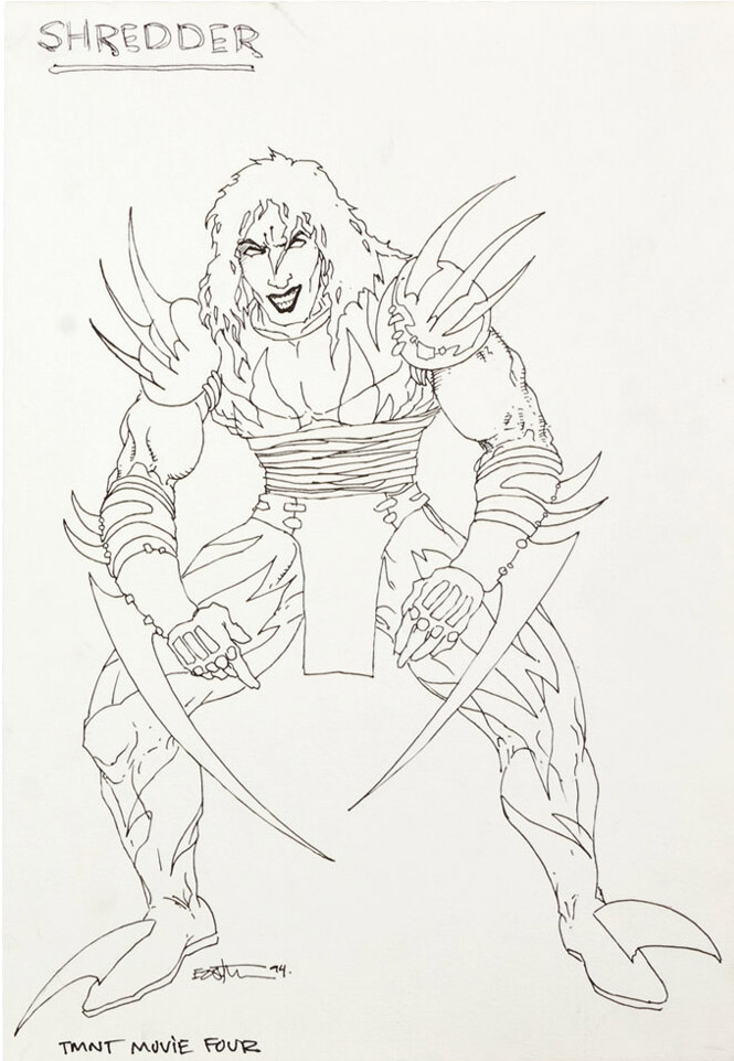 D’autres personnages ont été imaginés dès 1994. April et Casey Jones bien entendu, mais aussi le retour du Foot Clan avec des soldats portant des armes à feu et surtout Shredder ! Le grand ennemi des tortues aurait peut-être gardé son apparence de mutant de la fin du deuxième film.