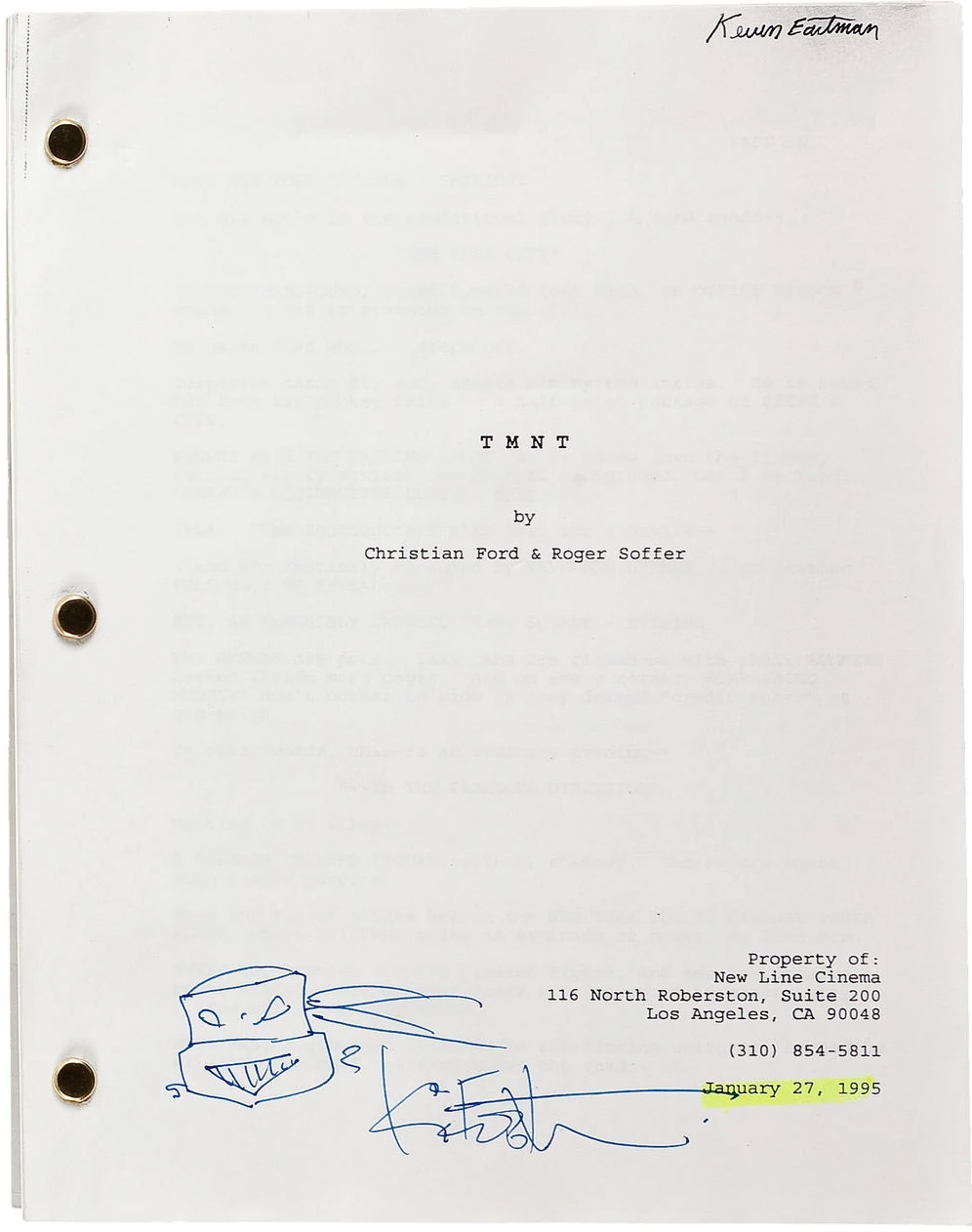 Les scénaristes Christian Ford et Roger Soffer, encore débutants dans le domaine, ont été auditionnés en vue de travailler sur l’éventuel film. Ils ont proposés quelques idées et un scénario préliminaire surnommé Four turtles and a baby. Si New Line avait adoré les idées, Eastman et Laird avaient détestés la plupart de ce qui était avancé. Toutefois, certaines idées leur avaient plu et ont acceptés de les engager. Le directeur général de la société de production, Michael Lynne, expliquait que « nous développions une nouvelle vision des tortues qui va leur donner une nouvelle orientation ». Le scénario de Ford et Soffer a été finalisé le 27 janvier 19952. À ce moment, le tournage du film devait débuter à l’été 19951.