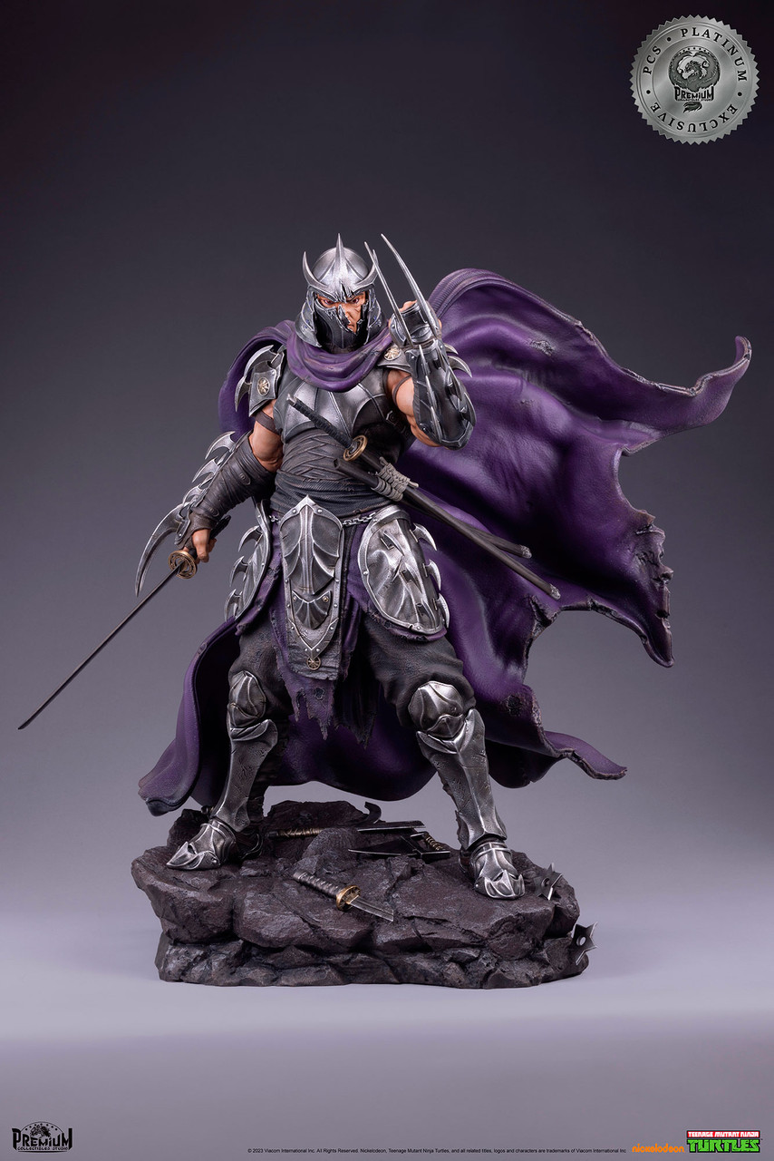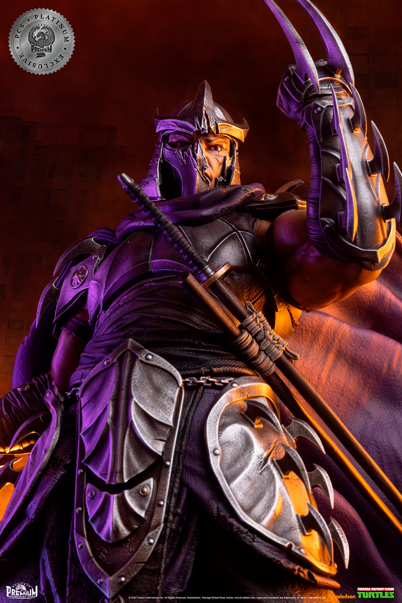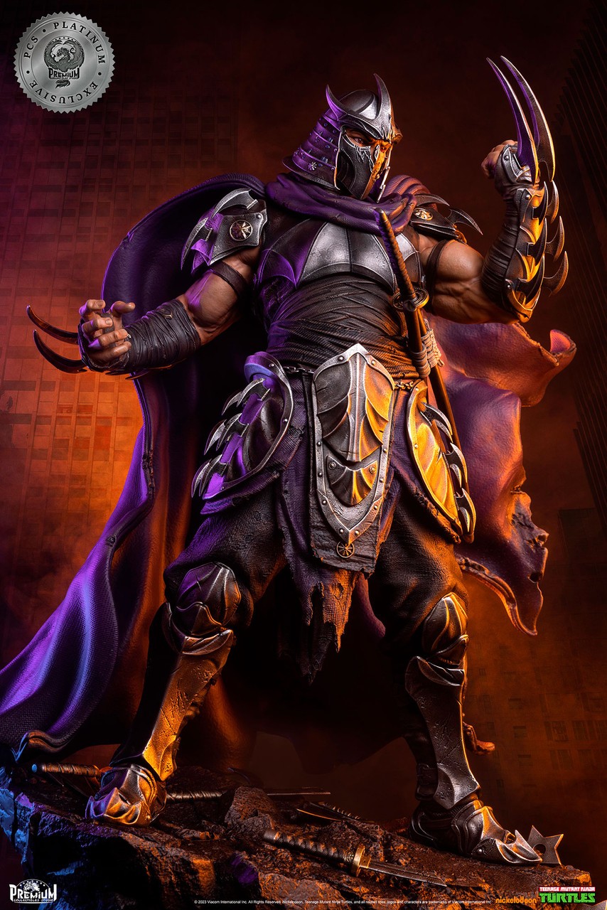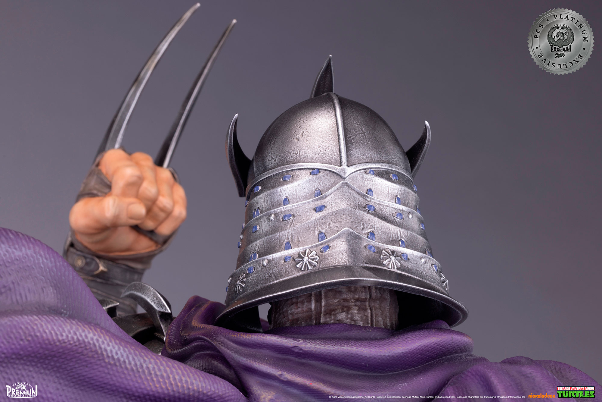 Shredder était la deuxième statuette annoncée officiellement par PCS à travers un teasing le 7 novembre sur les réseaux sociaux, mais la troisième à paraître dans cette série, après Donatello. La version présentée alors disposait de teintes plus sombres et de détails de tissus rouges.