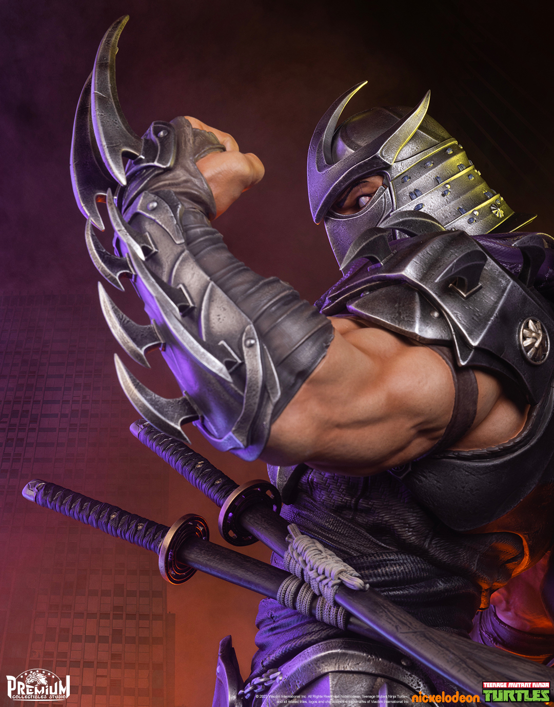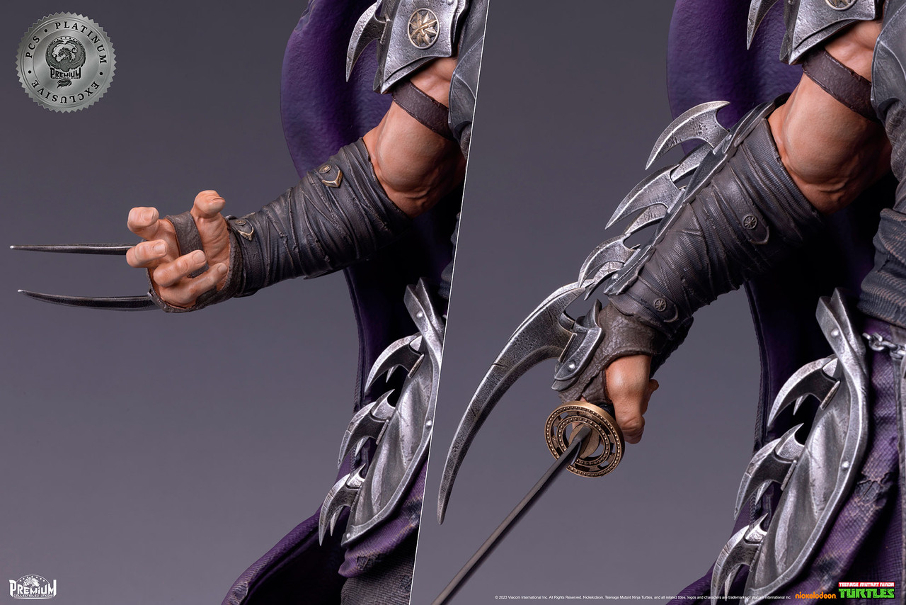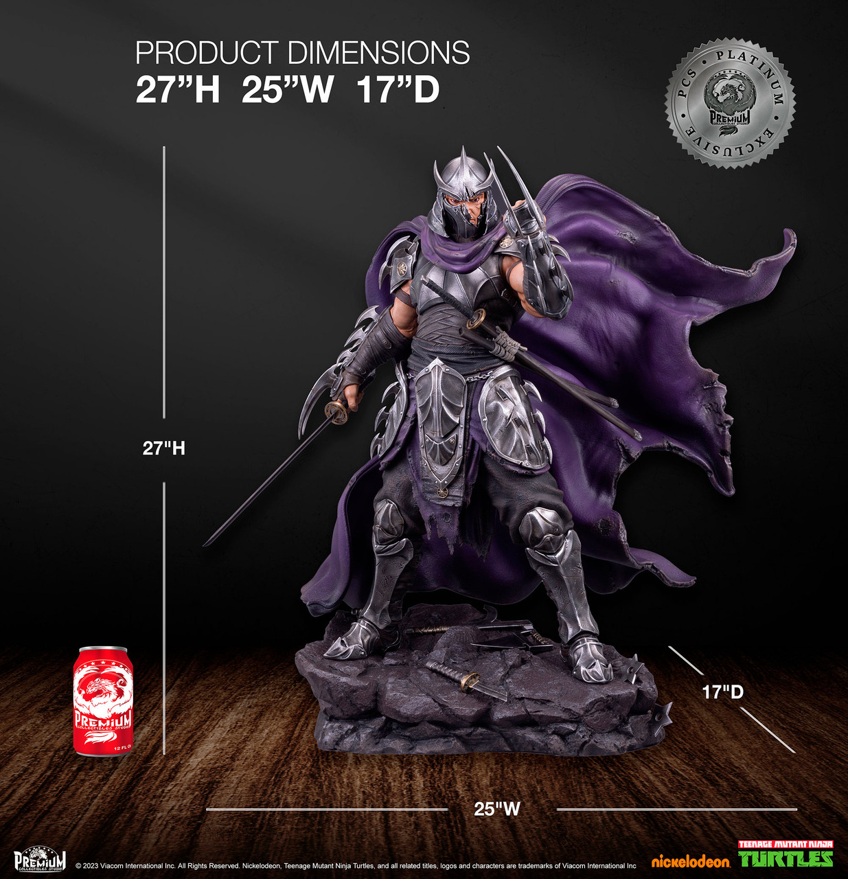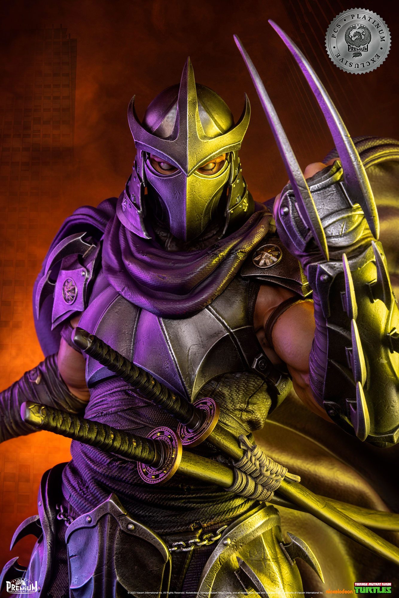 Shredder était la deuxième statuette annoncée officiellement par PCS à travers un teasing le 7 novembre sur les réseaux sociaux, mais la troisième à paraître dans cette série, après Donatello. La version présentée alors disposait de teintes plus sombres et de détails de tissus rouges.