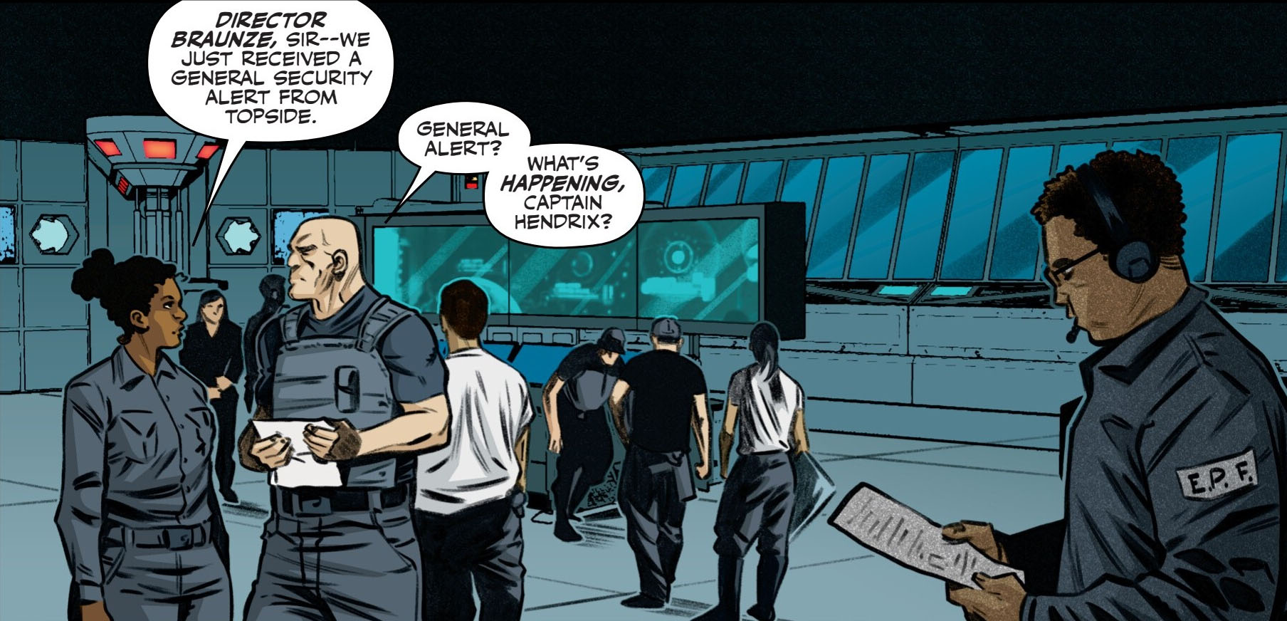 Pendant ce temps, Braunze contactait le Dr. Yuhasz pour l’avertir de la potentielle arrivée imminente du mutant enragé. L’individu ne s’inquiétait pas le moins du monde, les soldats géraient la situation. Il en faudrait bien plus pour l’atteindre d’ici là. Le scientifique, qui travaillait avec l’EPF depuis de nombreuses décennies, ne ressemblait plus vraiment à celui qu’il avait été du temps de Wayne Bishop.
