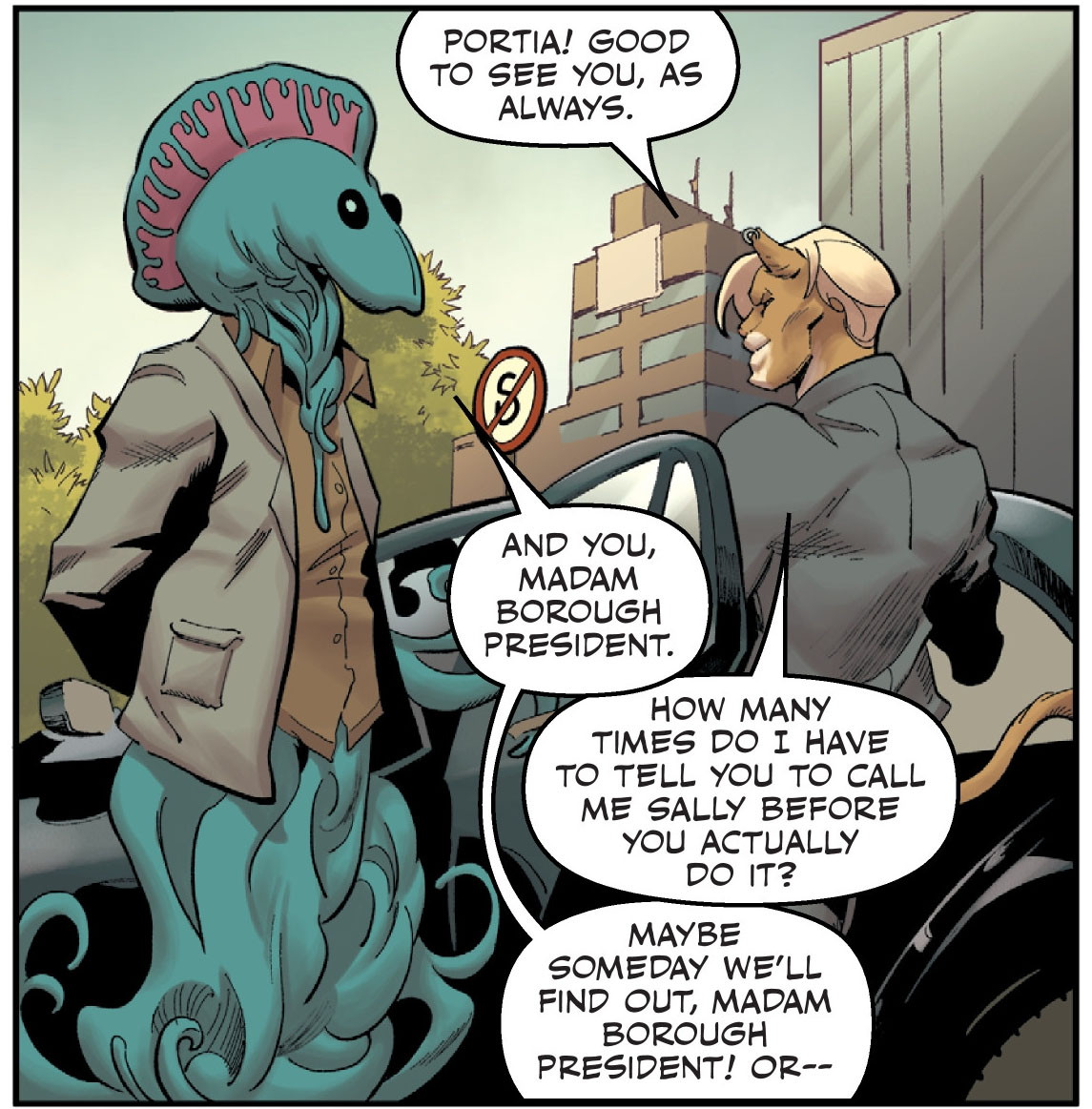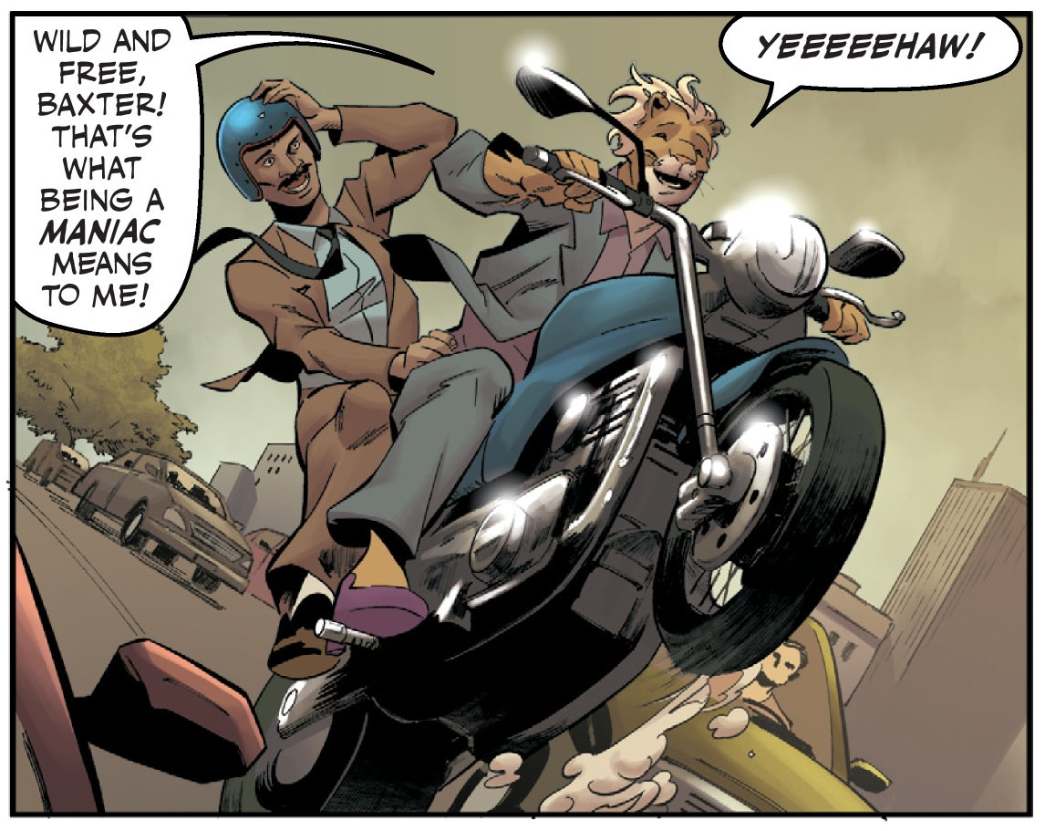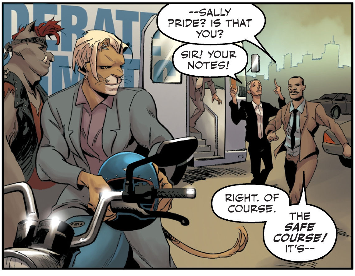 Au même moment, Sally frappait à la porte de son véhicule, enfourchant une moto. La lionne filait à vive allure avec le maire à travers les rues, slalomant entre les véhicules à l’arrêt, les trottoirs et les passants. Elle s’engouffrait même dans une ruelle et fracassait une barrière. Finalement, après quelques folies, ils arrivaient sur le lieu du débat. Stockman était outré du comportement de la mutante, qui avait bien manqué de les tuer. Il ne comprenait pas pourquoi elle l’avait aidé. Dans le fond, Sally s’était enfin sentie libre. Le maire partait pour son débat, terriblement stressé. Une fois devant son pupitre, après quelques hésitations, Stockman déchirait son discours et décidait de prendre sa campagne en main. Il était temps qu’il redevienne lui-même. Une fois le débat terminé, il quittait la pièce d’un pas décidé et regagnait son jet.