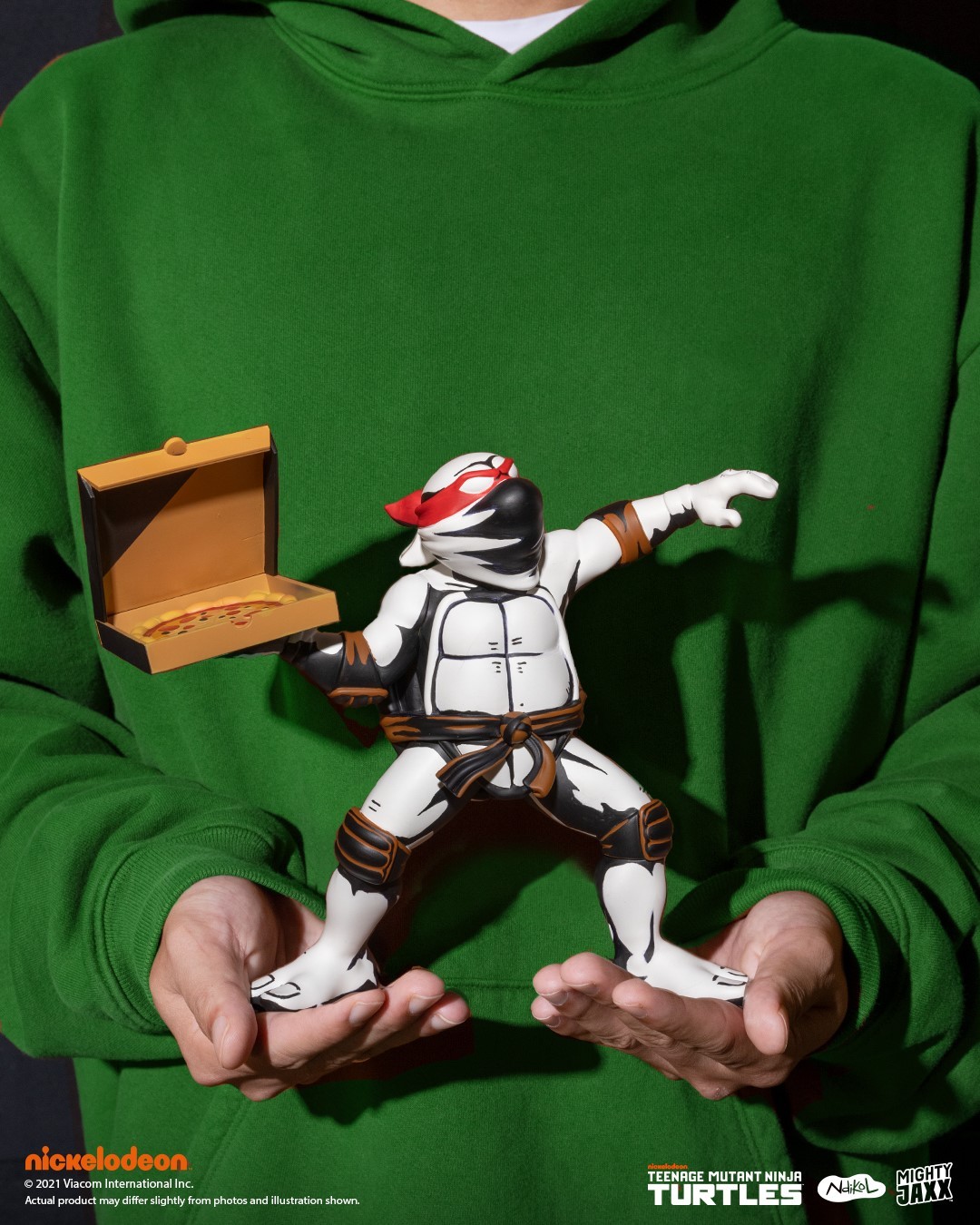 La TMNT Pizza Bomber est une œuvre de l’artiste indonésien Adhika Rahmani (aka NDikol). La tortue a été annoncée sur son Instagram le 29 juillet pour une fenêtre de précommande de 24h uniquement, le 7 août sur le site de Mighty Jaxx. Il s’agit bien d’un produit officiel estampillé Nickelodeon. Aucune date de sortie n’a été renseignée mais les premiers acquéreurs semblent l’avoir obtenue entre août et décembre 2021.