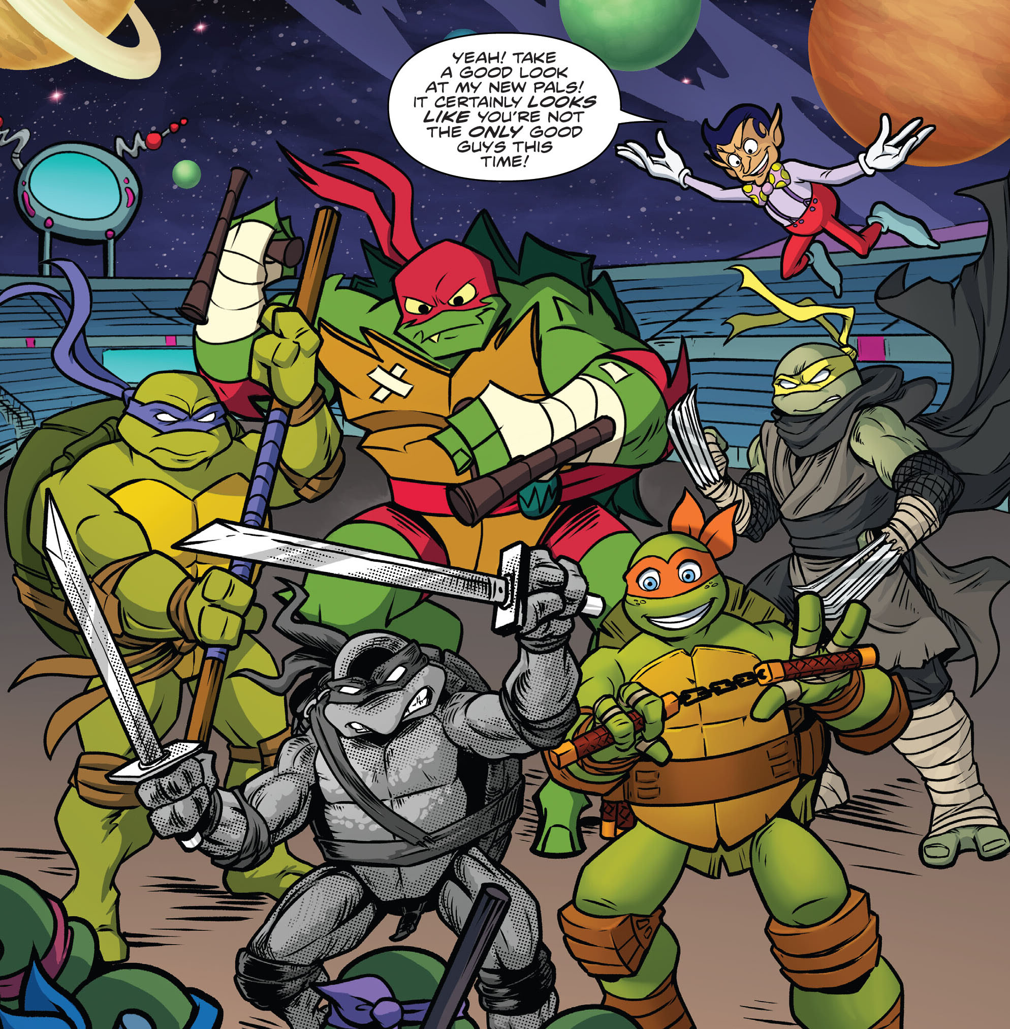 As promised, Mister Ogg is back! His last attempt to punish the Teenage Mutant Ninja Turtles’ wisecracking ways and meta mannerisms failed, but he’s still got a few surprises up his sleeve. He’s devised a set of challenges, and if the Turtles win, he’ll never bring up their fourth wall-breaking again. If they lose, though, the consequences will be dire—they’ll be wiped from existence! Let the games begin with part 1 of the Ogglympics!