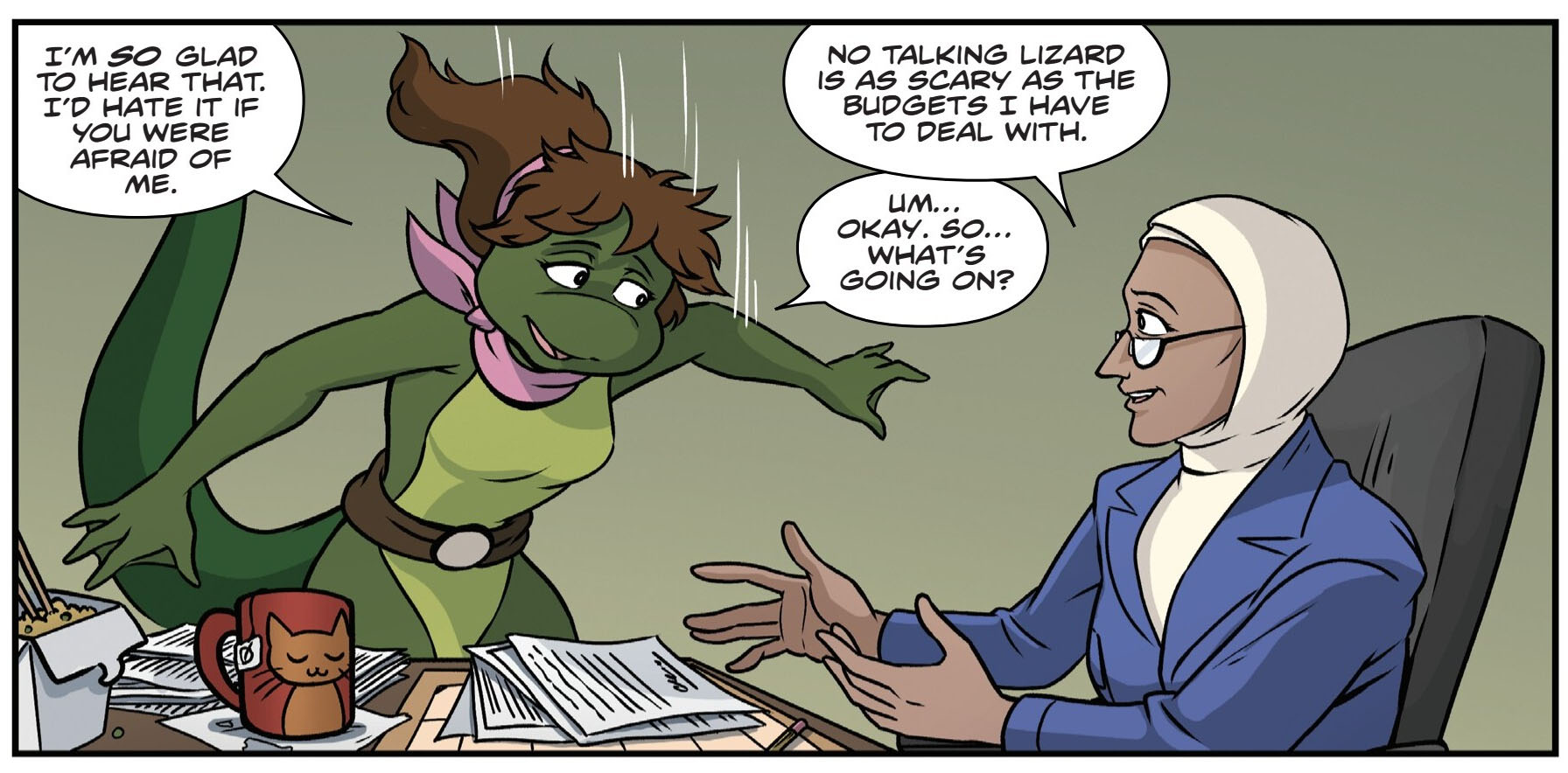 En réalité, les choses étaient bien moins reluisantes. Enfermée dans son bureau, le Dr. Hosny était au téléphone avec quelqu’un. Les questions de la journaliste l’avaient particulièrement dérangée. Au même moment, quelqu’un arrivait depuis le plafond. Il s’agissait de son ancienne élève, Mona Lisa ! Sa meilleure élève au passage ! La mutante venait lui proposer de l’aide. Le Dr. Hosny lui expliquait alors qu’à chaque fois qu’ils essayaient de réassembler un artefact découvert lors des fouilles, celui-ci se retrouvait désassemblé au lever du soleil. Par manque d’argent, ils ne pouvaient payer des gardes ou des caméras de surveillance.